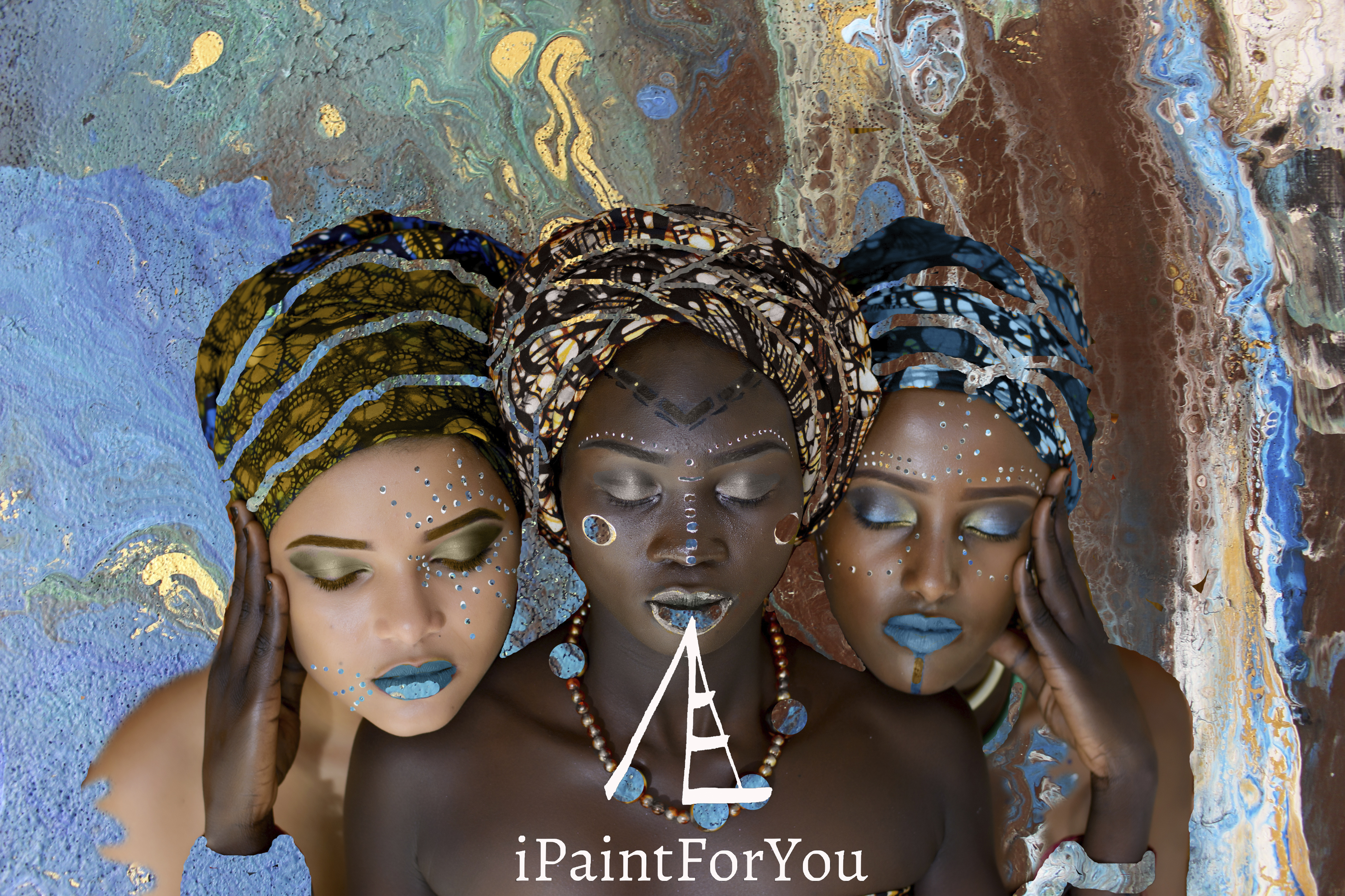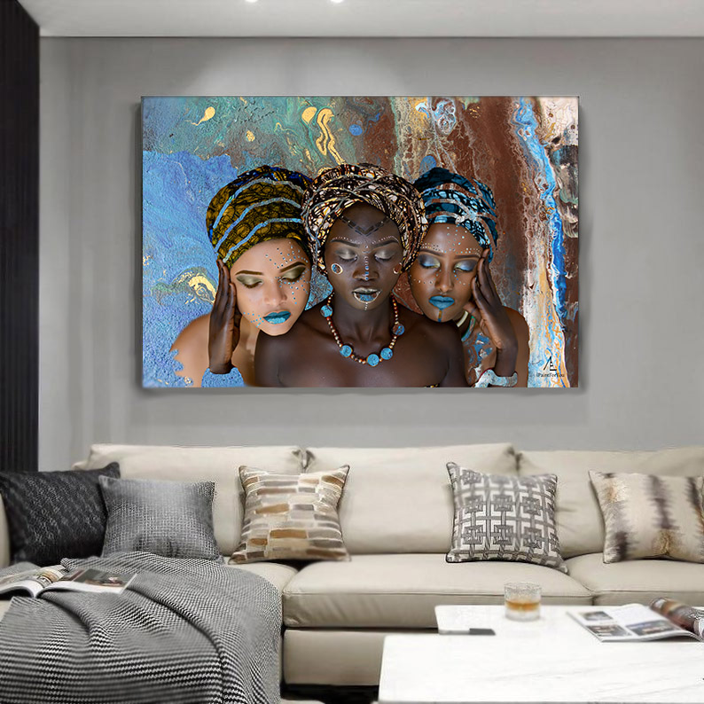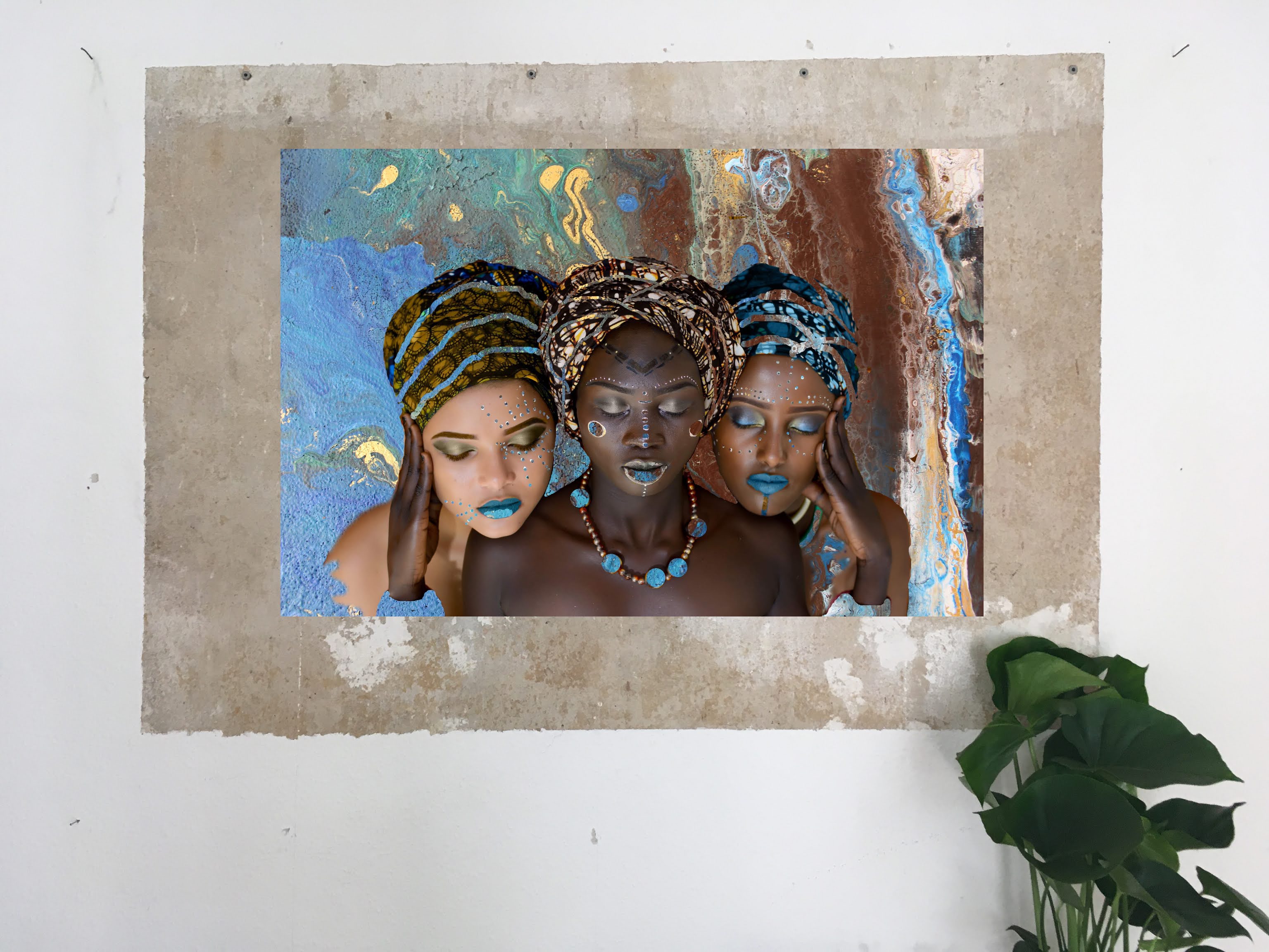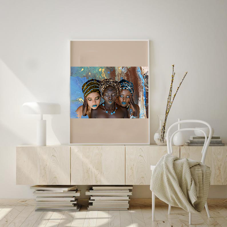 Lea & Leo Spielmann artists created and named this art Three Women. Handpainted art and photography fusion, we call it a collage. Unique digital art product for download. Download & print at home or in your local copyshop. This art can be printed life long, as many times as you want in a poster size: