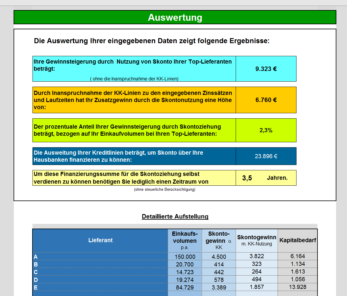 Ermitteln Sie sowohl den Zusatzgewinn einer Einzelrechnung, wie auch den Ihrer Top-Lieferanten.