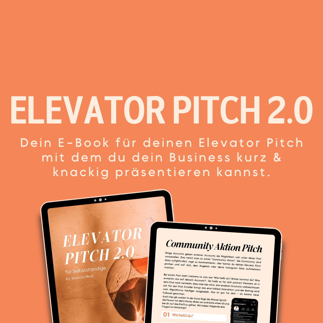 Dein eBook für deinen Elevator Pitch mit dem du dein Business/deine Produkte/deinen Instagram Account kurz & knackig präsentieren kannst.