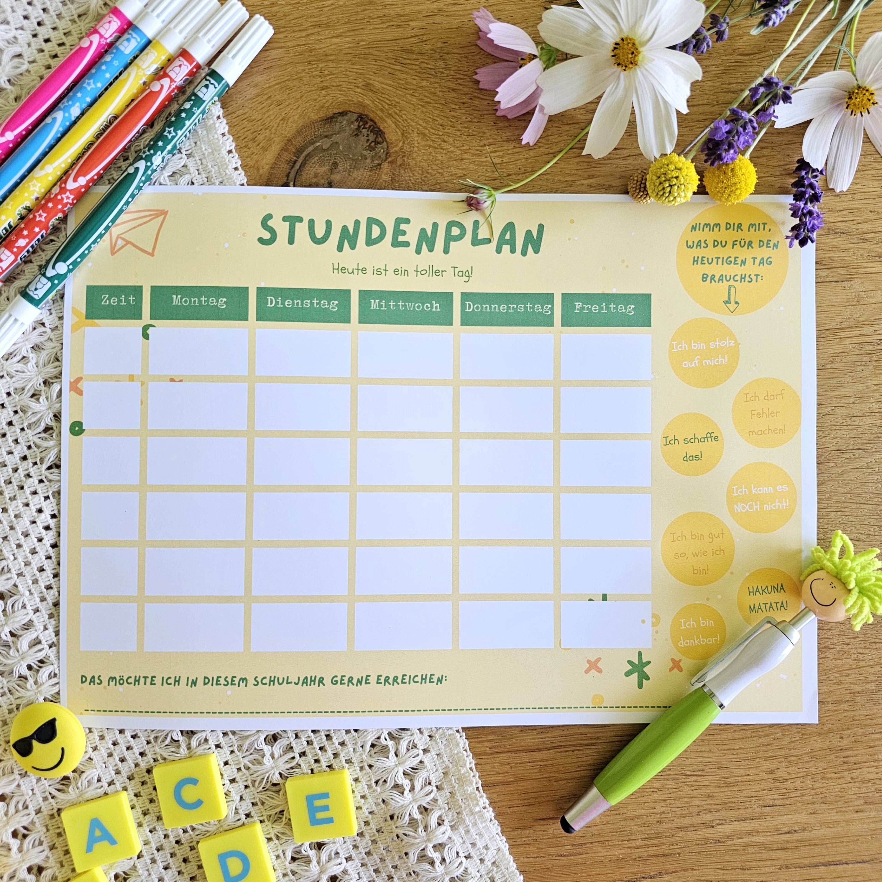 Der mentaler Stundenplan unterstützt dein Kind das ganze Jahr mit positiven Affirmationen und hilft ihm dabei das ganze Schuljahr ein konkretes Ziel zu verfolgen. Ein kleines Visionboard für den Alltag sozusagen.
