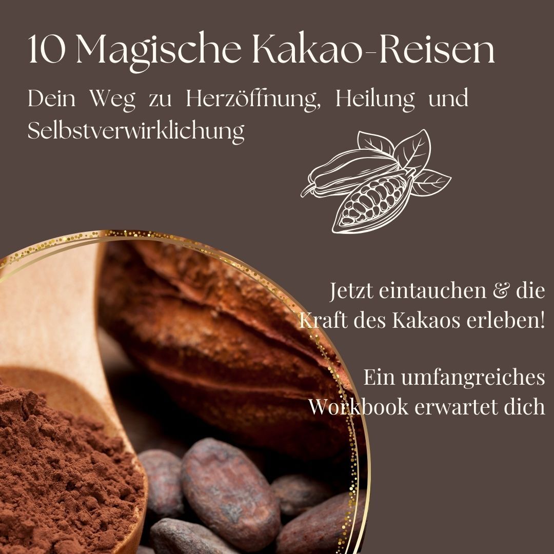 Stell dir vor, du tauchst ein in eine Welt, die dich mit Liebe, Weisheit und tiefem inneren Frieden erfüllt. Eine Welt, in der du dich mit deinem wahren Selbst verbindest, Altes loslässt und deine tiefsten Wünsche manifestierst. Die Magischen Kakao-Rituale laden dich ein, diese transformative Reise zu gehen – eine Reise, die dein Herz öffnet, deine Kreativität entfacht und deine Seele heilt.