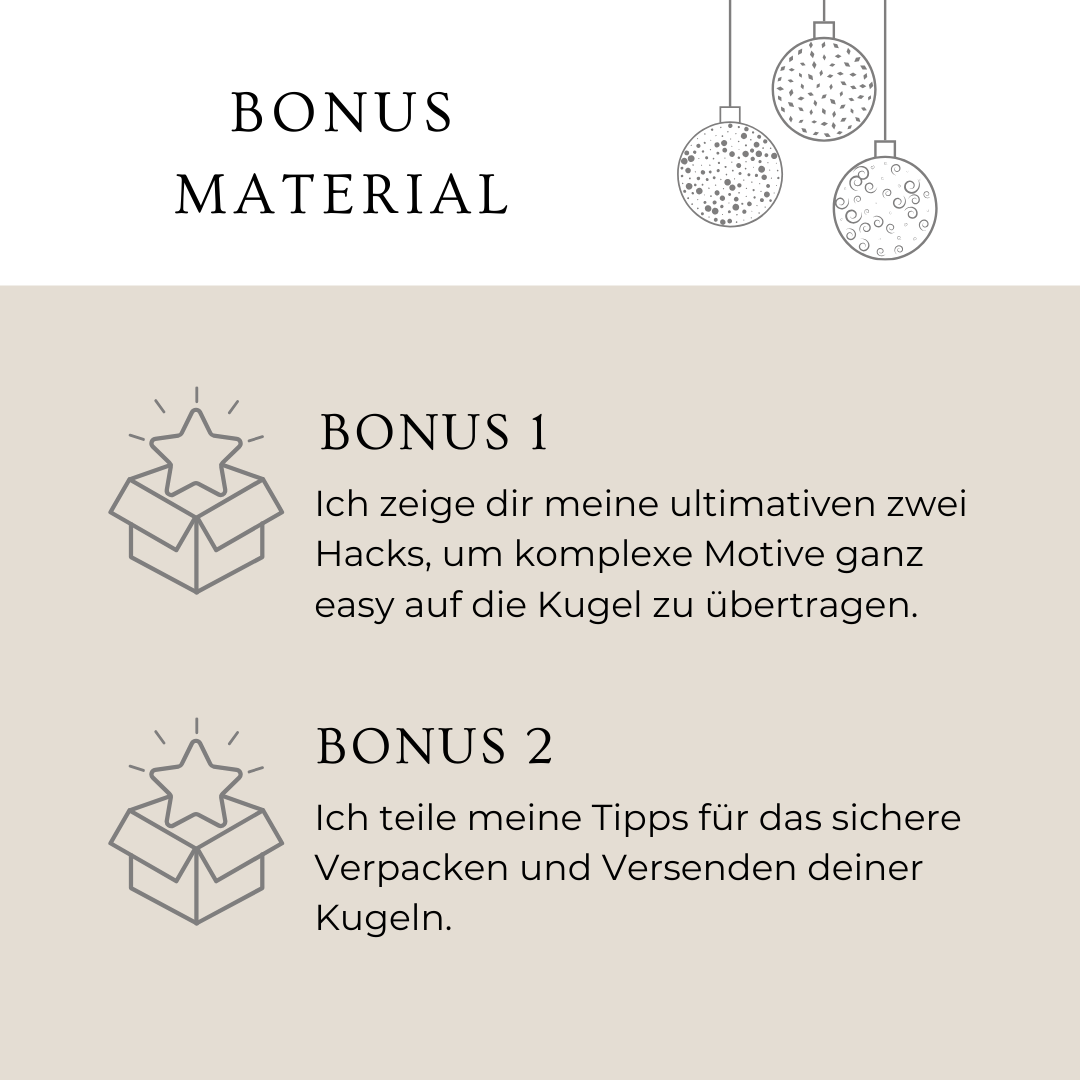 Ich teile all mein Wissen aus 5 Jahren Erfahrung mit mehr als 1.000 beschrifteten Kugeln , damit auch du von Anfang an perfekte Ergebnisse erzielst.