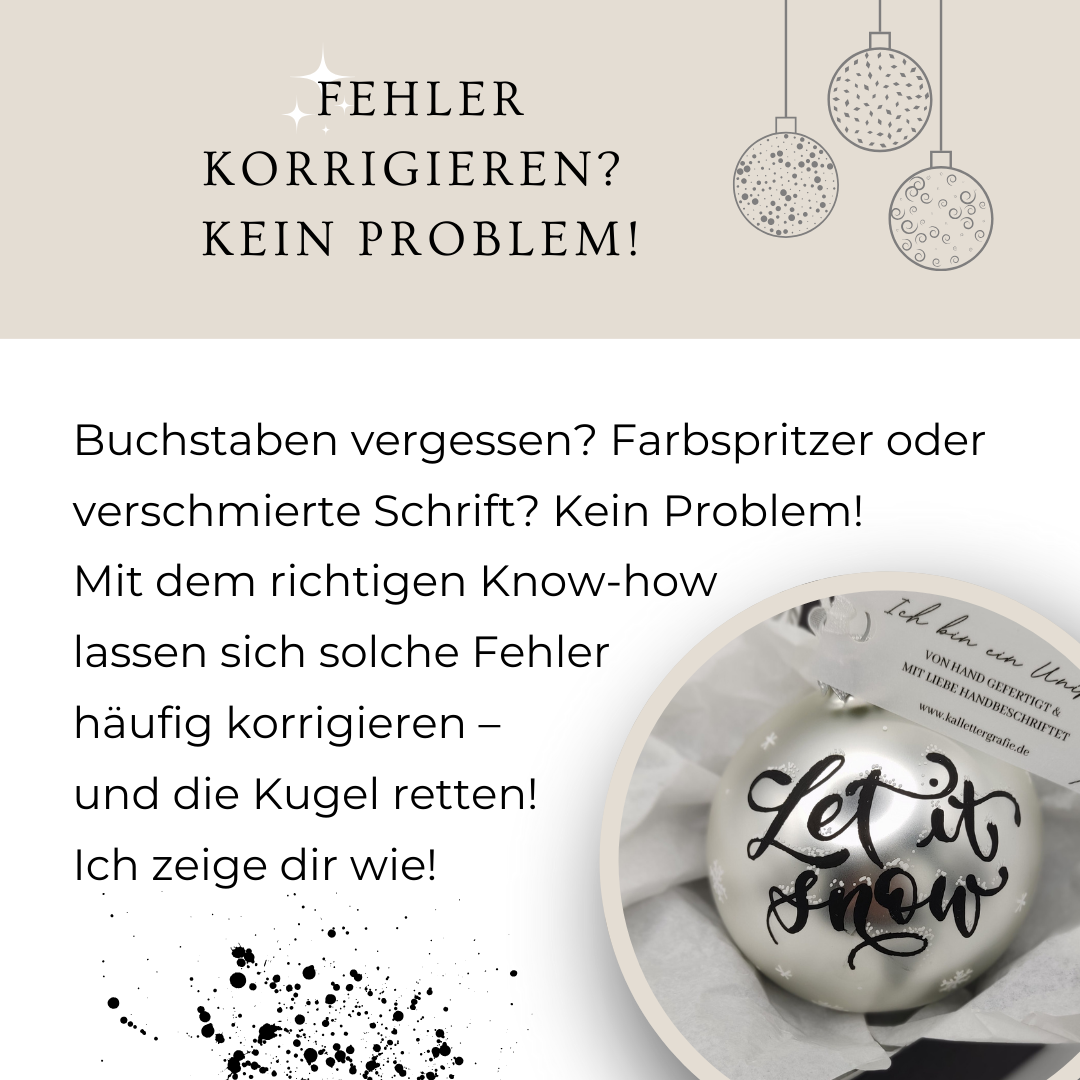 ✨ Keine Panik bei Fehlern: Ich zeige dir bewährte Techniken, wie du Fehler oder Farbspritzer korrigierst, ohne dabei die Kugeln zu ruinieren.