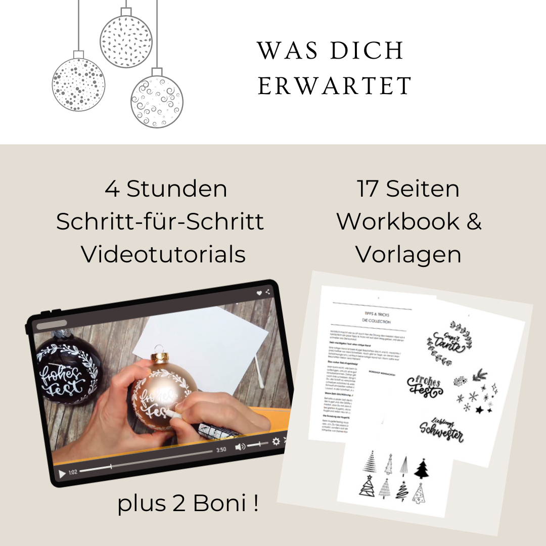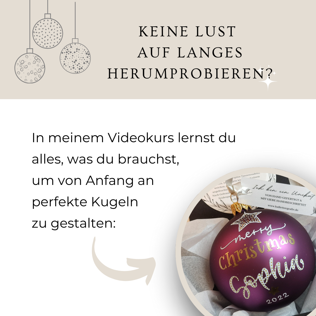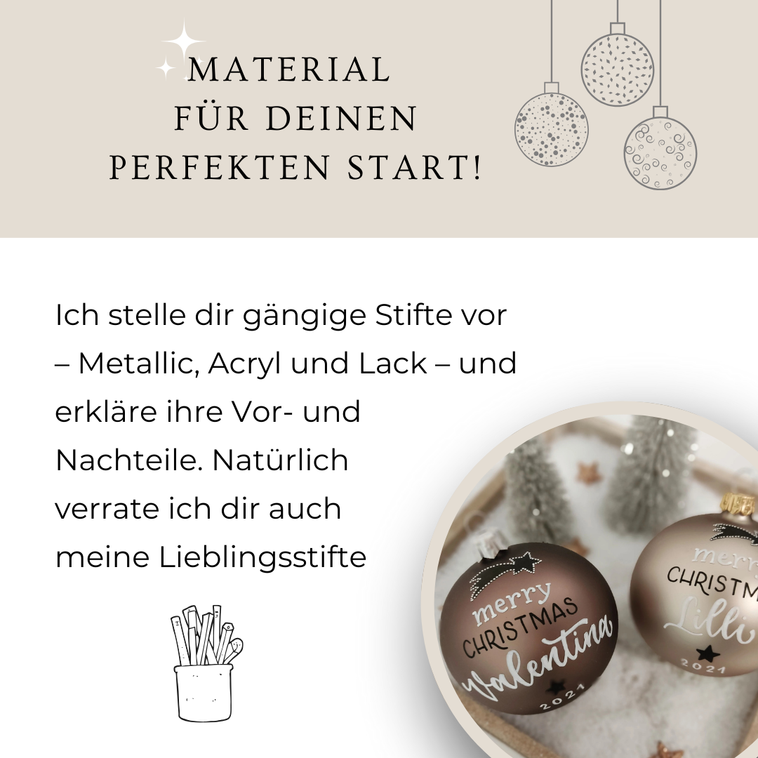 ✨ In meinem Bestseller Kurs zeige ich dir Schritt für Schritt, wie du wunderschöne, individuelle Weihnachtskugeln gestaltest!.