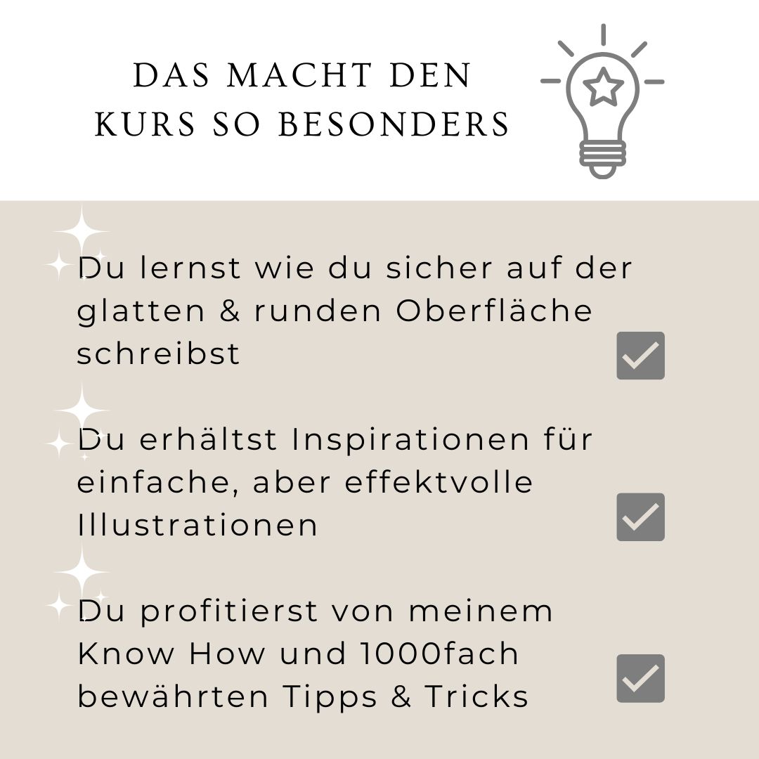 ✨ Sicher auf der runden Oberfläche: Mit meinen cleveren Tricks schaffst du es, gerade zu schreiben und schwierige Motive wie Kränze gleichmäßig und rund umzusetzen.