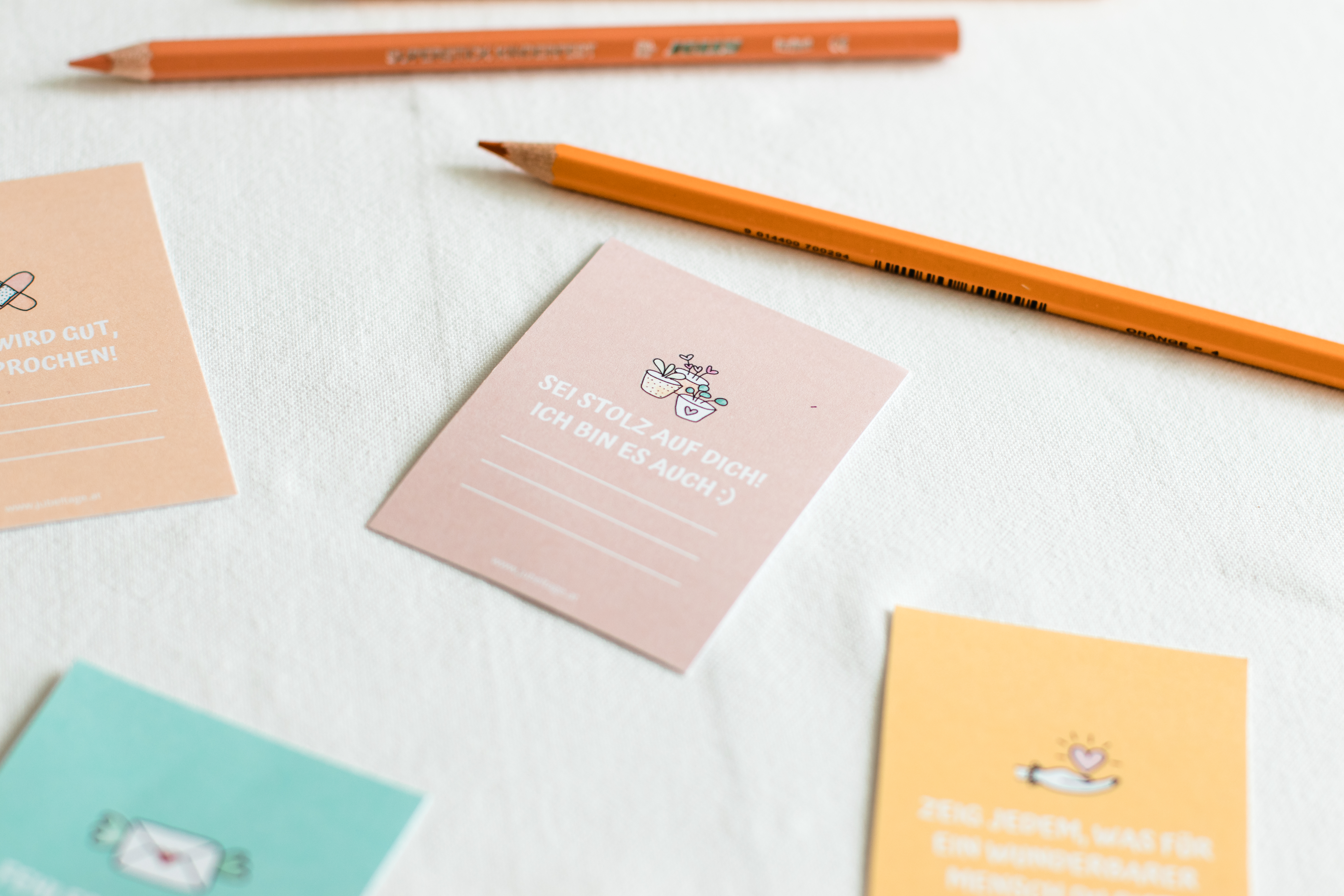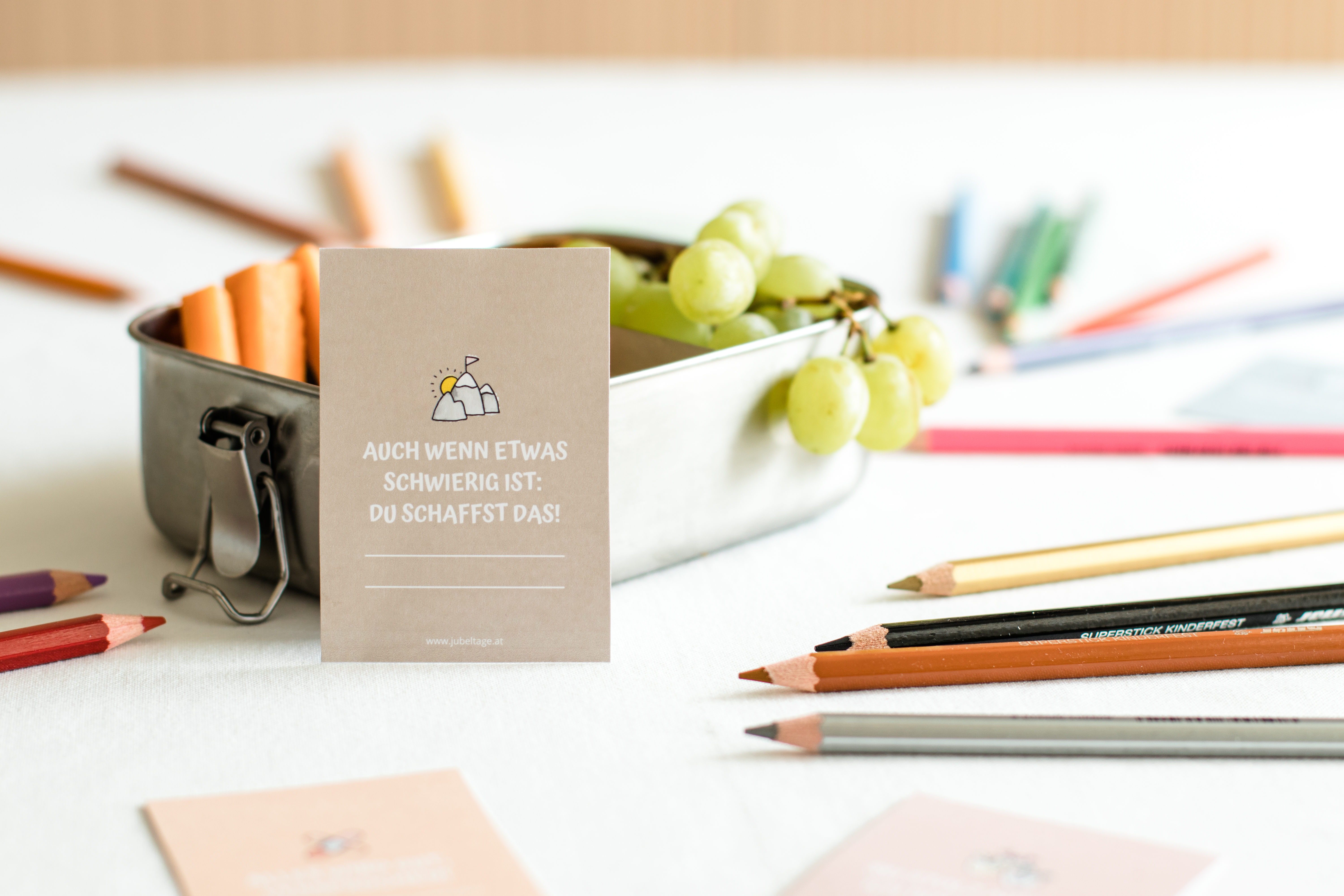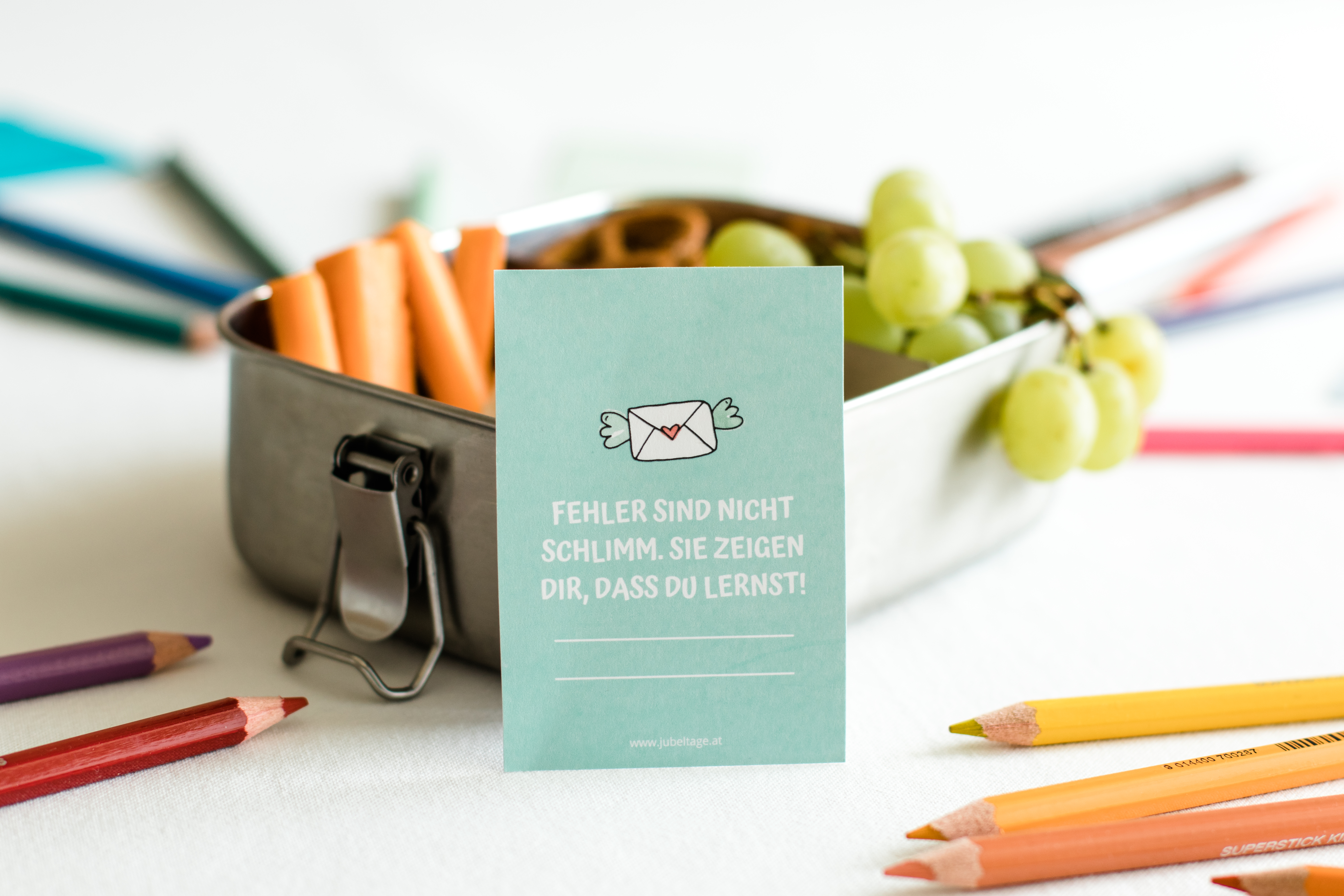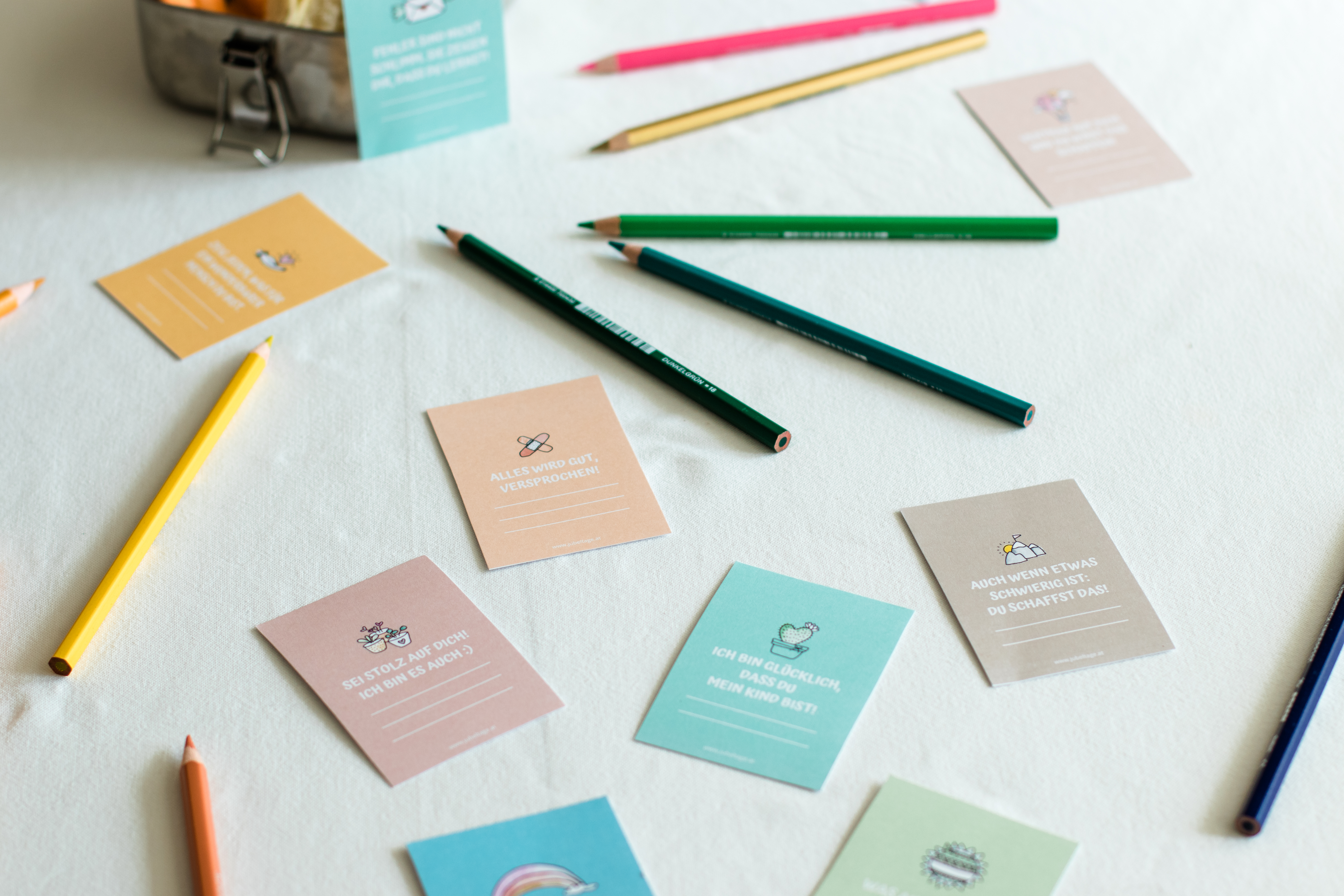 Welche bestärkenden Worte hättest du gerne gehört, als du ein Schulkind warst? Jetzt kannst du deinem Kind jeden Tag ein kleines Zettelchen mit kraftvollen Worten zustecken! Perfekt für die Brotbox oder ihr zieht einfach beim Frühstück eine Karte.