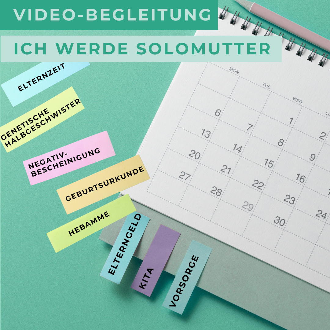 - Über 6 Stunden Input mit Informationen und Erfahrungsberichten zur Solomutterschaft, rechtlichen Aspekten, Tipps aus der Community- ein 54 Seiten langes Begleitheft für die eigene Recherche mit Infoboxen, Verlinkungen, Lesetipps und Checklisten, die du zur Selbstreflexion nutzen kannst