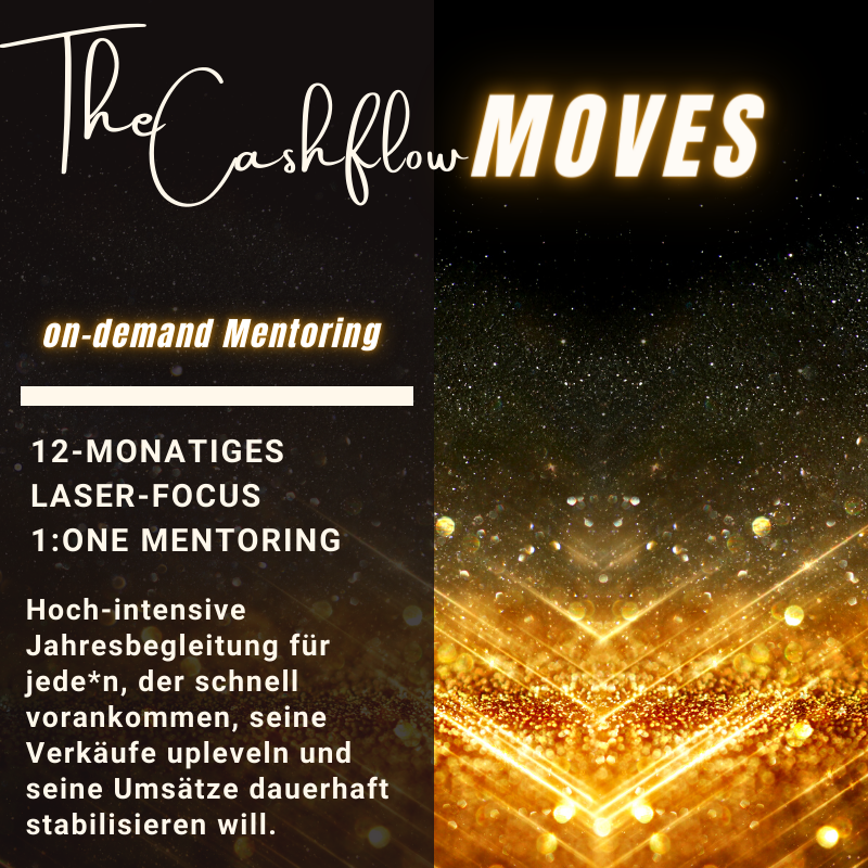 Mit THE CASHFLOW MOVES - dem Laser-Focus-Jahresmentoring on demand - gehst du mit Fokus auf das, was jetzt für dich und dein Business die oberste Prio hat:
