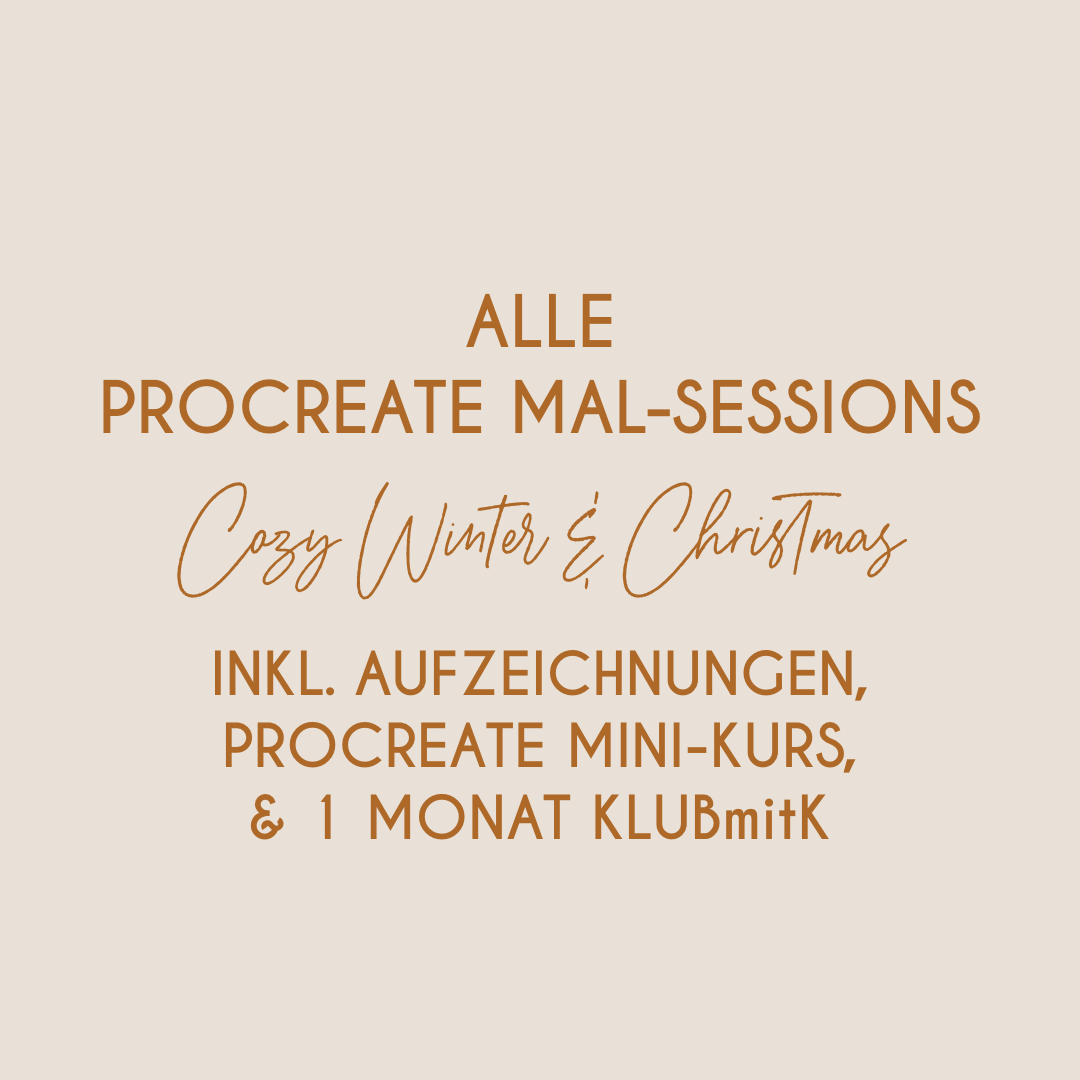 Alle (noch anstehenden) Tickets der Procreate Mal-Sessions aus der Reihe "Cozy Winter & Christmas"