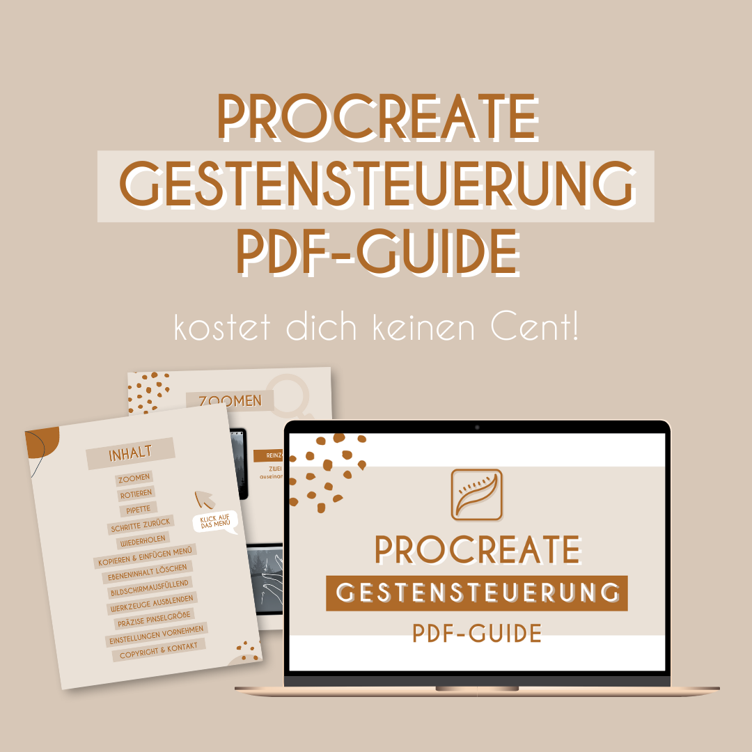 Zeit sparen und Procreate effizient nutzen? Verwende die Procreate-Gestensteuerungen. In diesem PDF-Guide stelle ich dir 10 dieser schnellen und abkürzenden Handbewegungen vor. Lade dir das PDF gleich herunter, kostet dich keinen Cent, nur deine Email-Adresse.