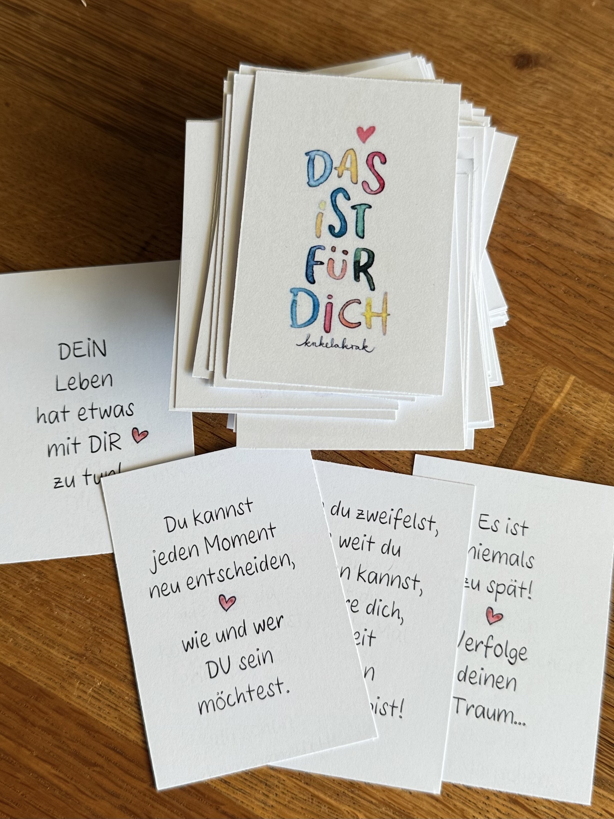 Jede Karte schenkt dir einen positiven Gedanken, eine liebevolle Erinnerung oder eine Portion Mut –