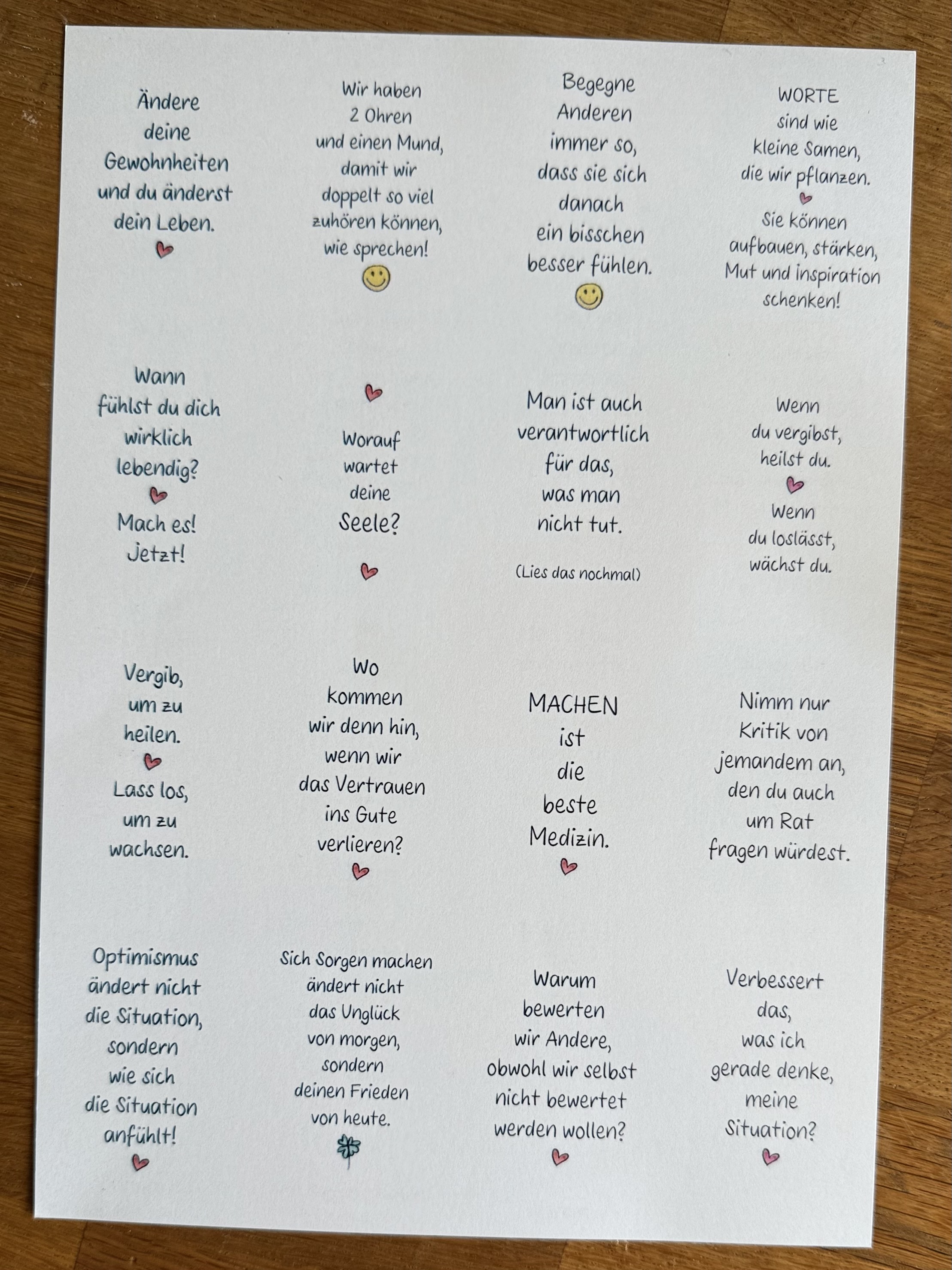zum Ausdrucken, Schneiden, Verschenken, für Coachings, Seminare, Yogastunden, etc.