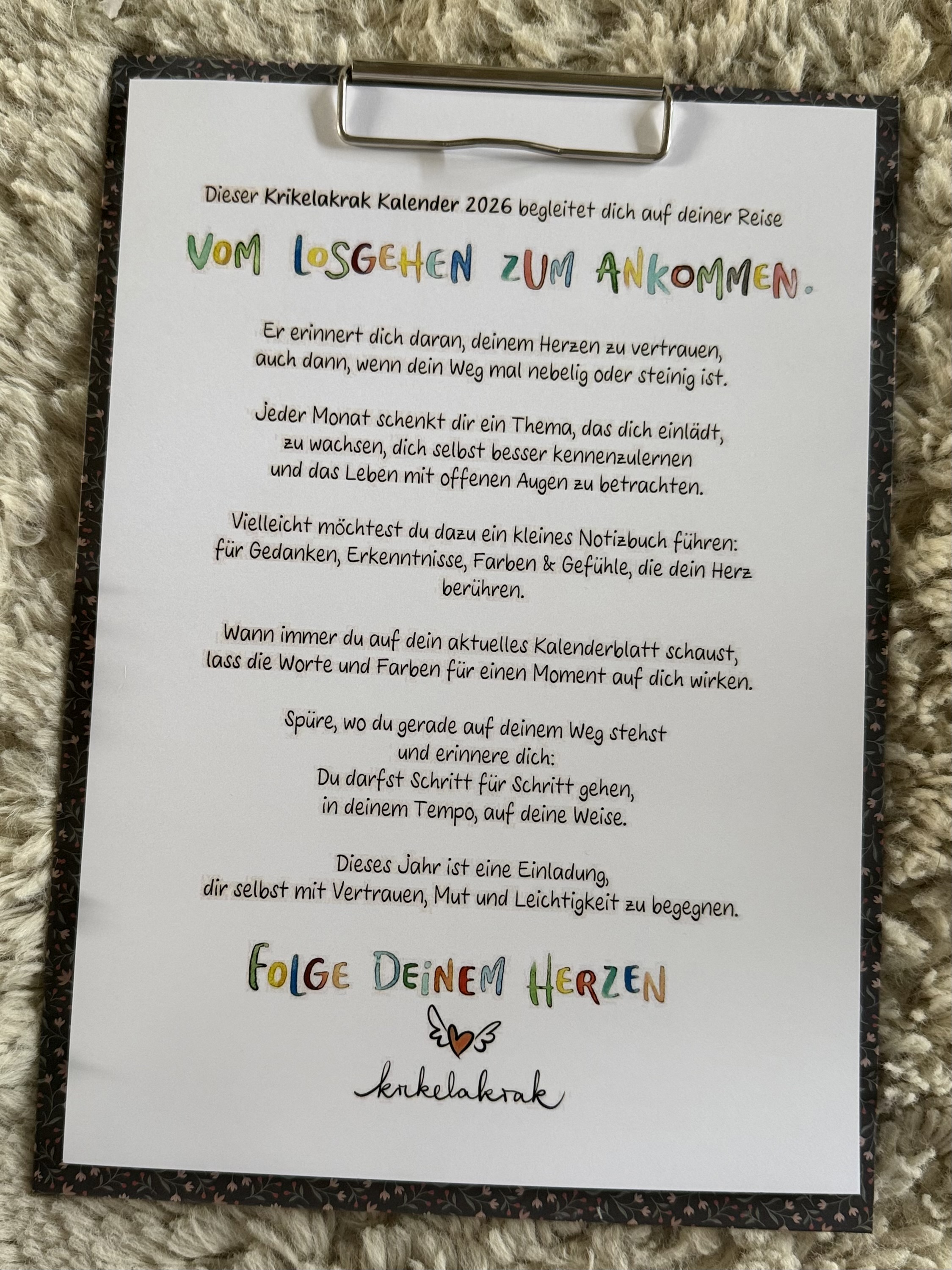 Er begleitet dich durch das Jahr 2026 mit der Botschaft: "Folge deinem Herzen - Vom Losgehen zum Ankommen".