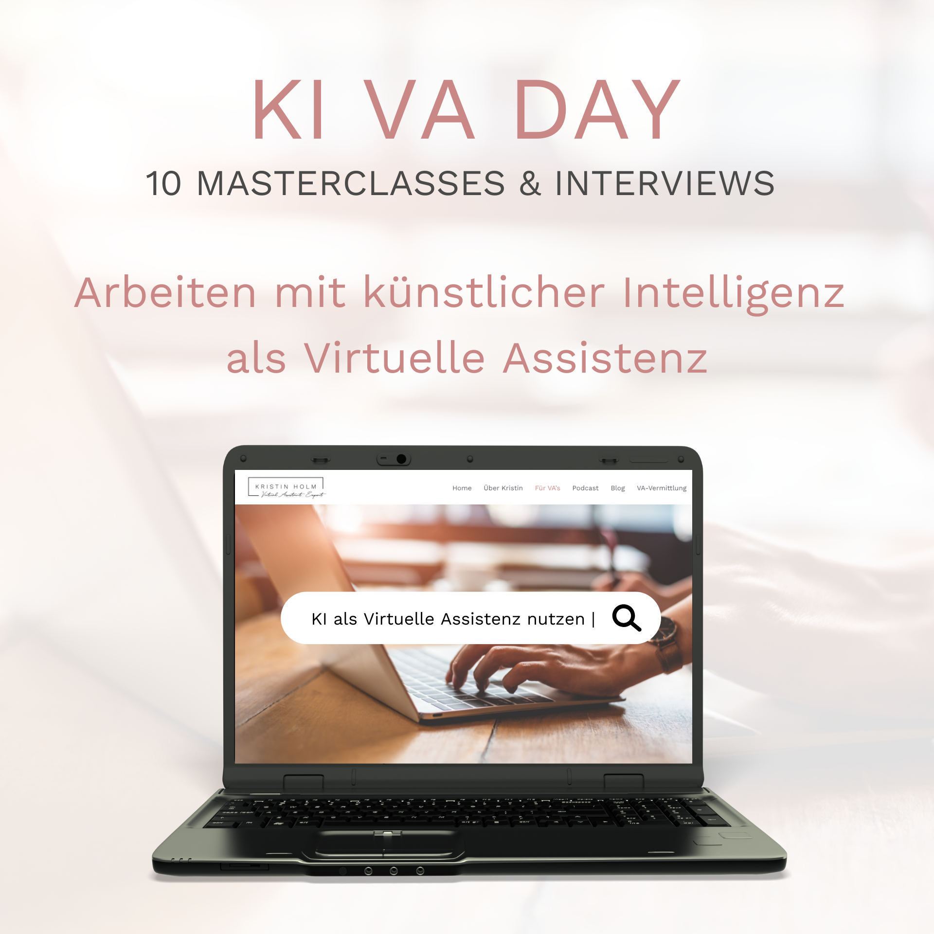 In der heutigen digitalen Welt ist Künstliche Intelligenz (KI) nicht mehr wegzudenken. Sie bietet immense Möglichkeiten, dein VA-Business zu skalieren, effizienter zu arbeiten, Zeit zu sparen und deine Kunden noch professioneller zu unterstützen. Der KI VA Day vermittelt dir praxisnahe Anwendungsmöglichkeiten, wie du die Vorteile der KI gezielt für dein VA-Business und deine Kunden nutzt.