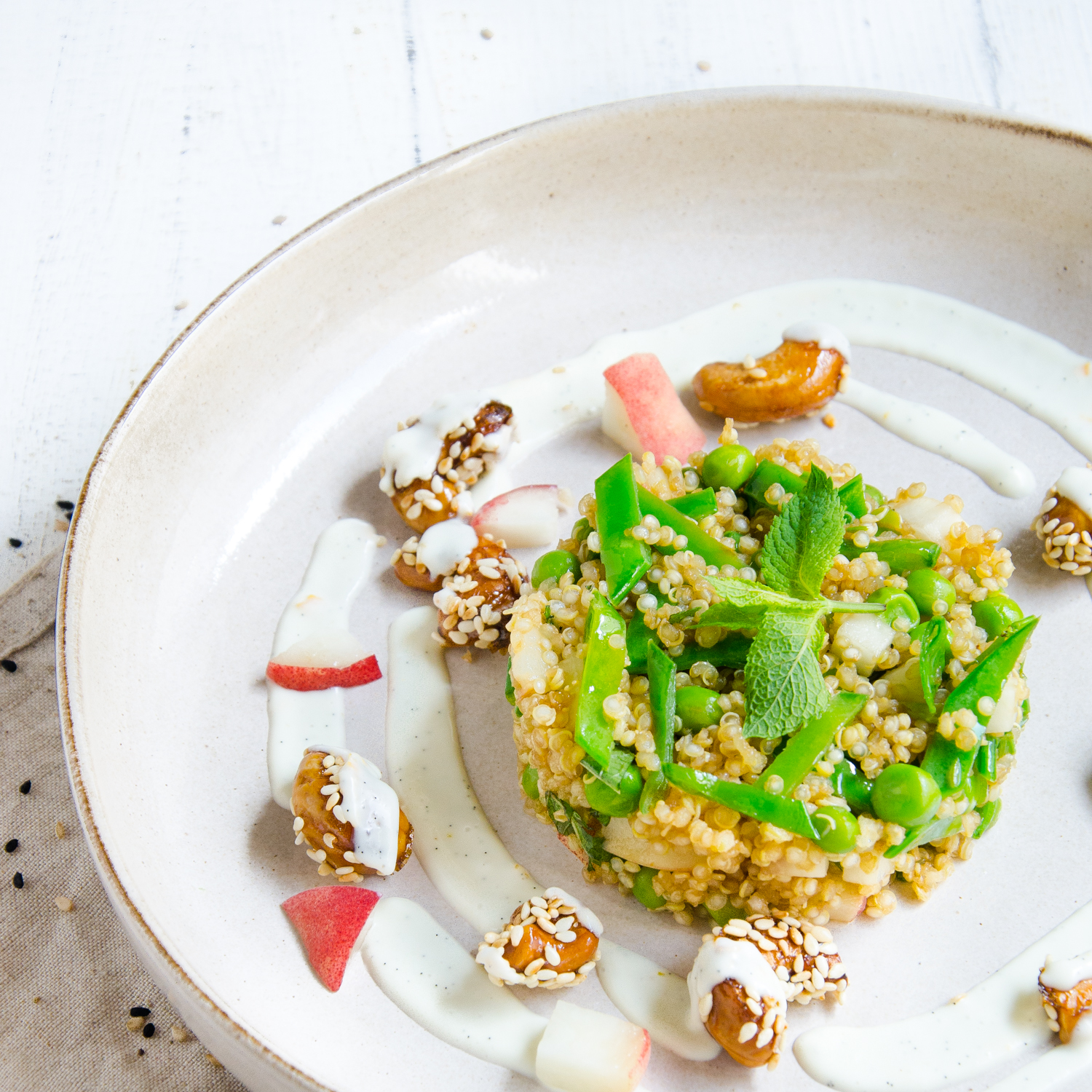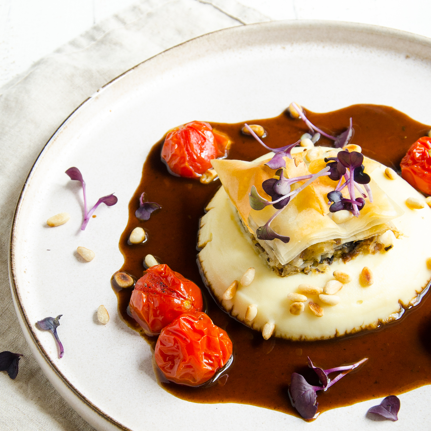 Für den Kurs hat Sandra zwei umfangreiche 5-Gänge Menü konzipiert, die einmal eher im Frühling/Sommer und einmal eher im Herbst/Winter saisonal einzuordnen sind. Dabei erwarten dich so fantastische Rezepte wie Rote Bete Carpaccio mit Estragon-Mandelfeta, Gyoza mit Pistazien-Edamame Füllung und Kumquatbutter oder geräucherter Kartoffelschaum mit Champignon-Baklava und geschmorter Cherrytomate. Alle Rezepte und Zubereitungsschritte zeigt dir Sandra Schritt für Schritt. Auch, wie du bei der Zubereitung einen guten Ablauf planen kannst und gegebenenfalls Teile vorbereiten kannst!
