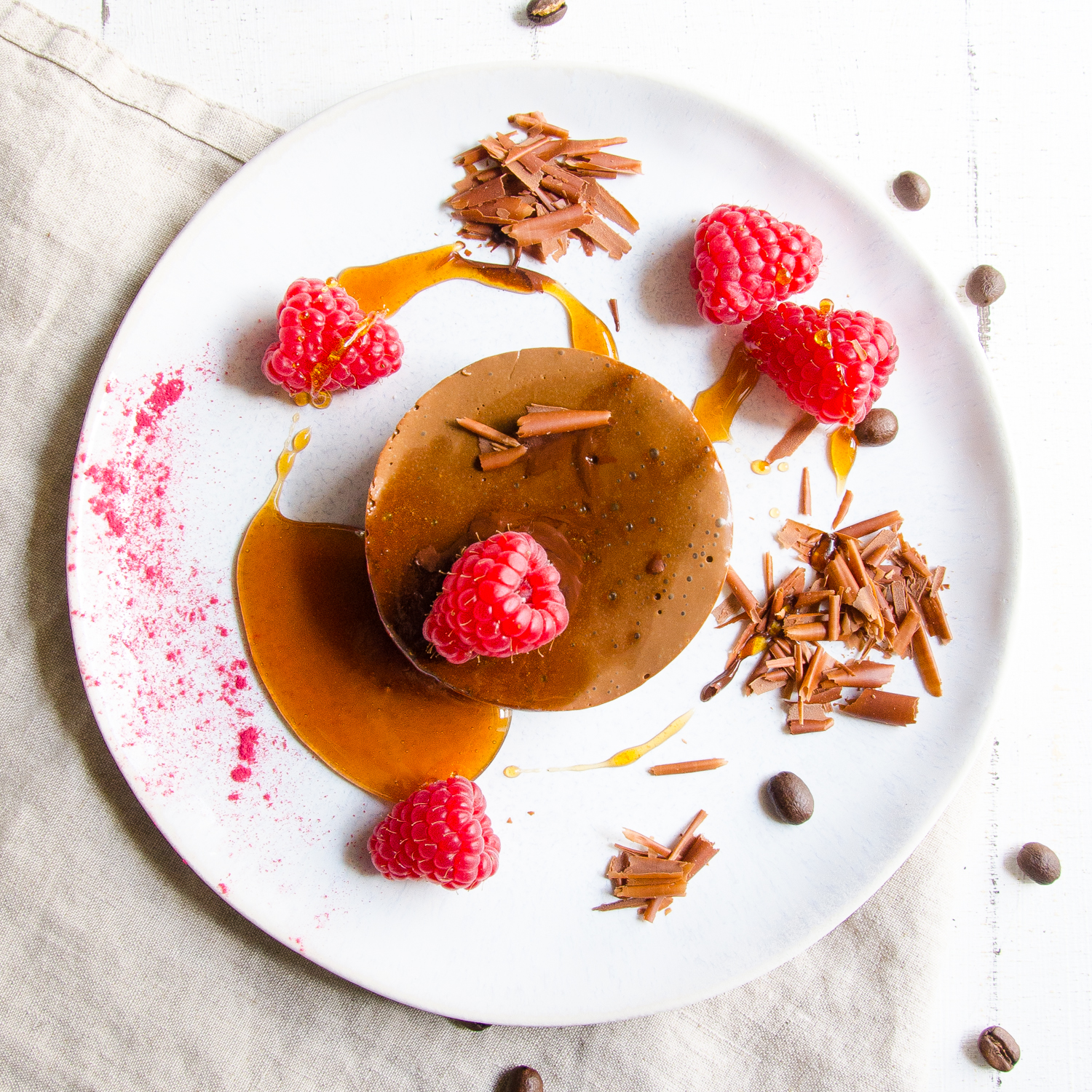 Dessert - Zartbitter-Espresso-Flan, Haselnuss-Sponge, Kaffee-Karamell