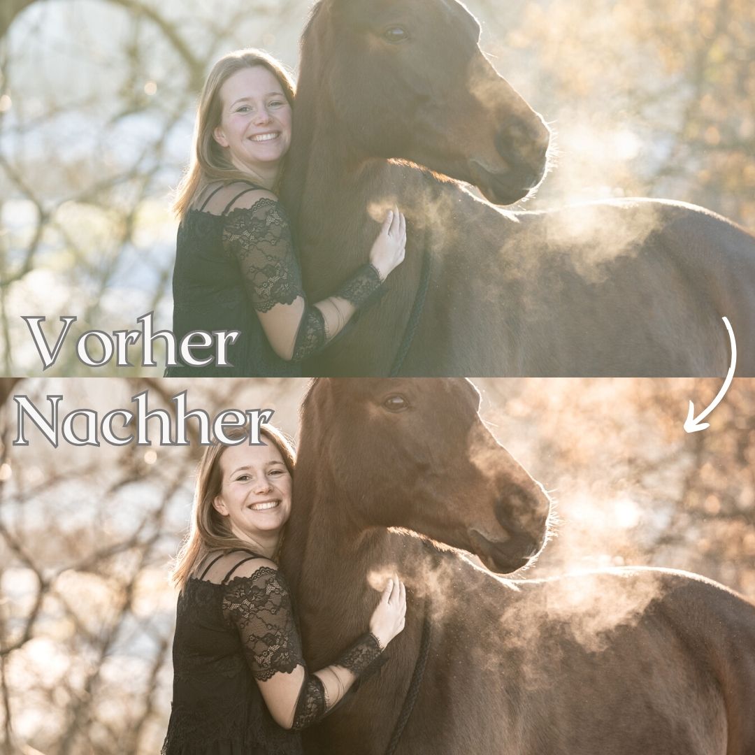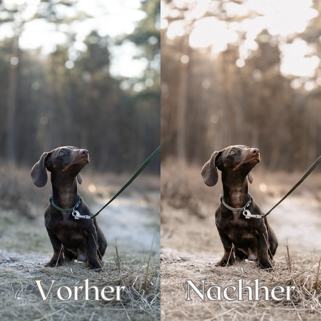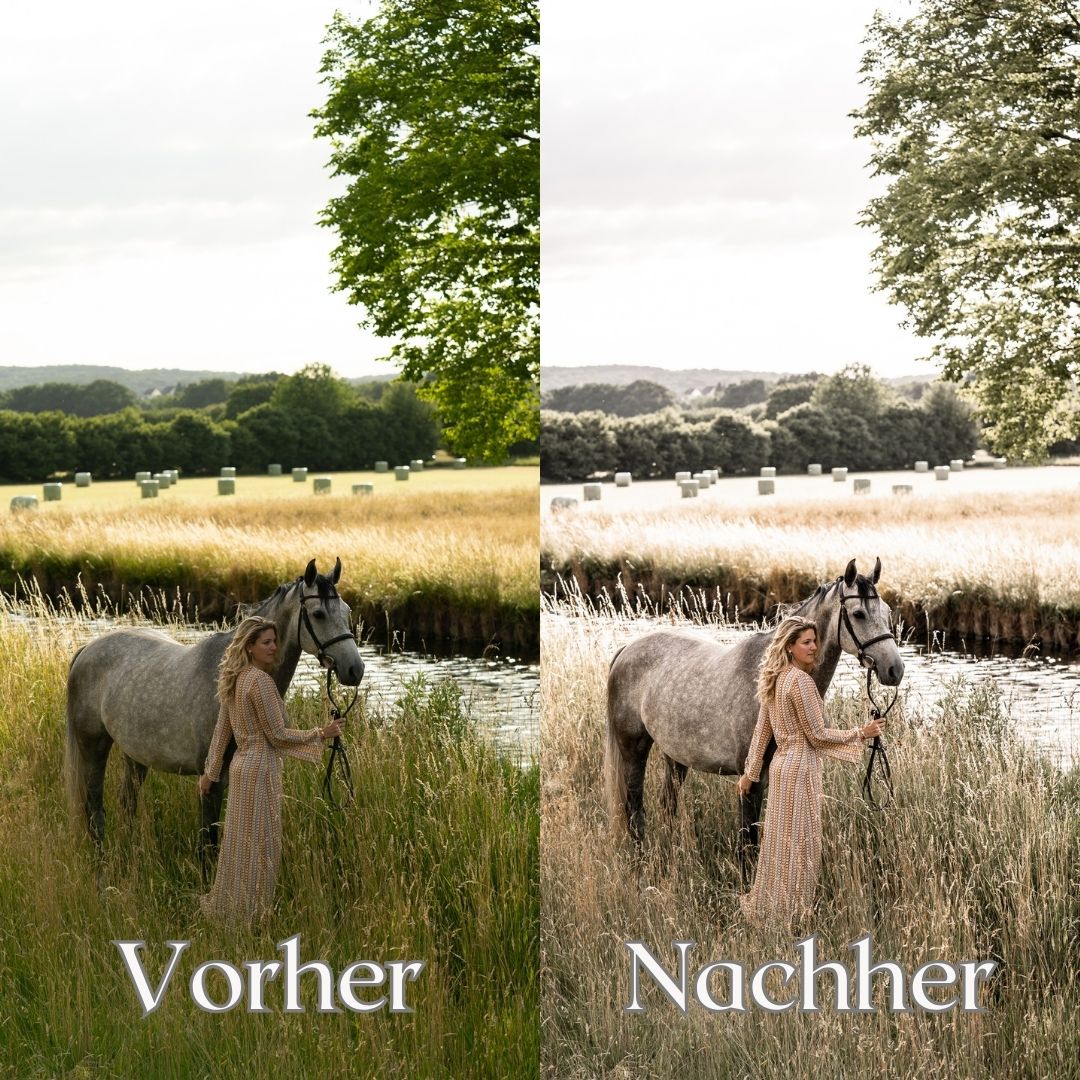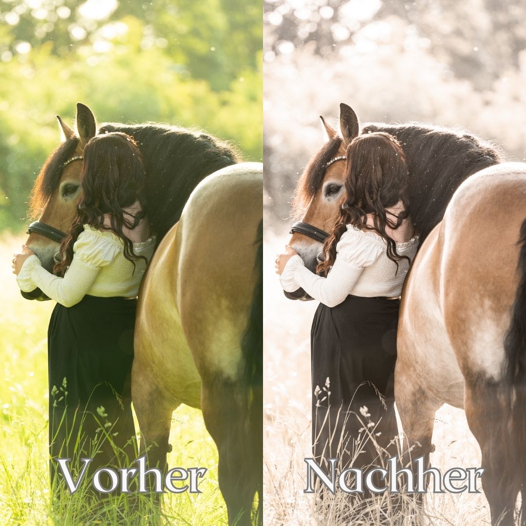 Mit diesen 25 professionellen Lightroom-Presets bekommst du eine schnelle, stimmige und sanfte Bearbeitung für deine Pferdefotos und Hundefotos in verschiedenen Lichtsituationen – ganz ohne nerviges Herumprobieren.