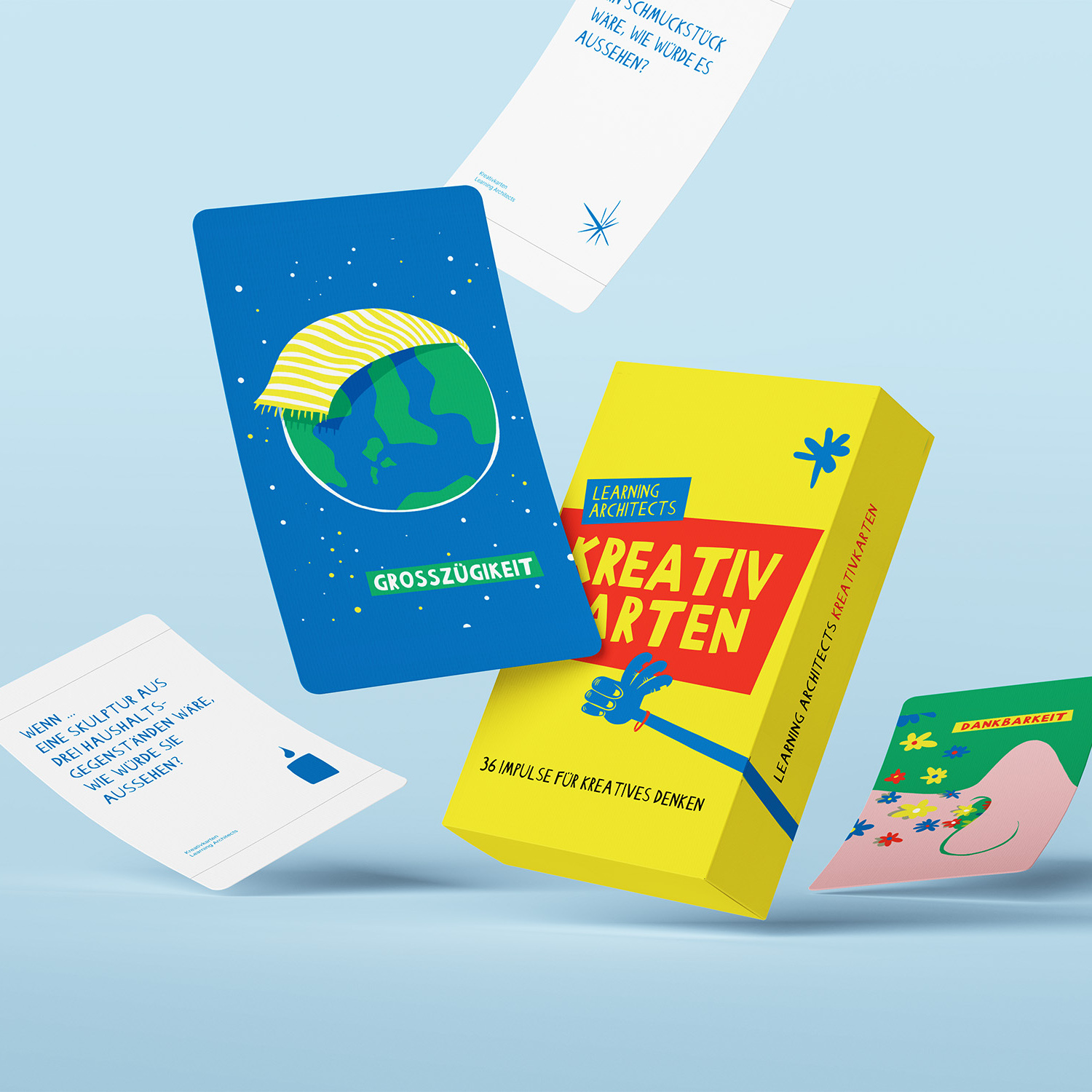 Unsere Learning Architects Kreativkarten sind ein vielseitiges Werkzeug zum kreativen Denken für Lerngestalter:innen. 36 individuell gestaltete Karten helfen neue und ungewöhnliche Perspektiven und Ansätze zu finden. Dabei geht es nicht um die perfekte Lösung, sondern um den spannenden Prozess des Ausprobierens und Entdeckens.