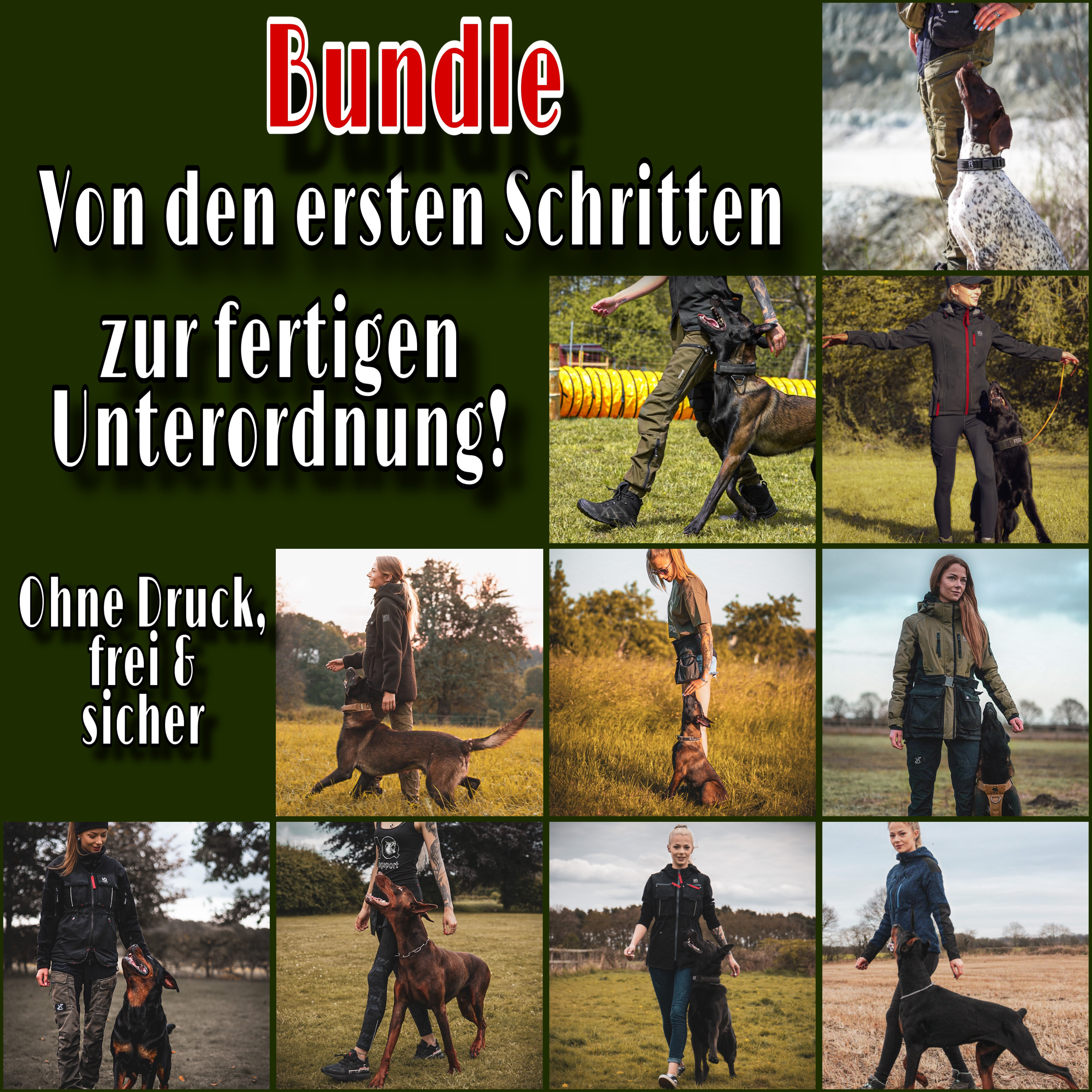 Hier bekommst das Anfänger-Komplett-Paket bestehend aus den zwei Onlinekursen "Erste Schritte für motiviertes Training - Das Futtertreiben" und "Der Weg zur sicheren und freien Unterordnung".