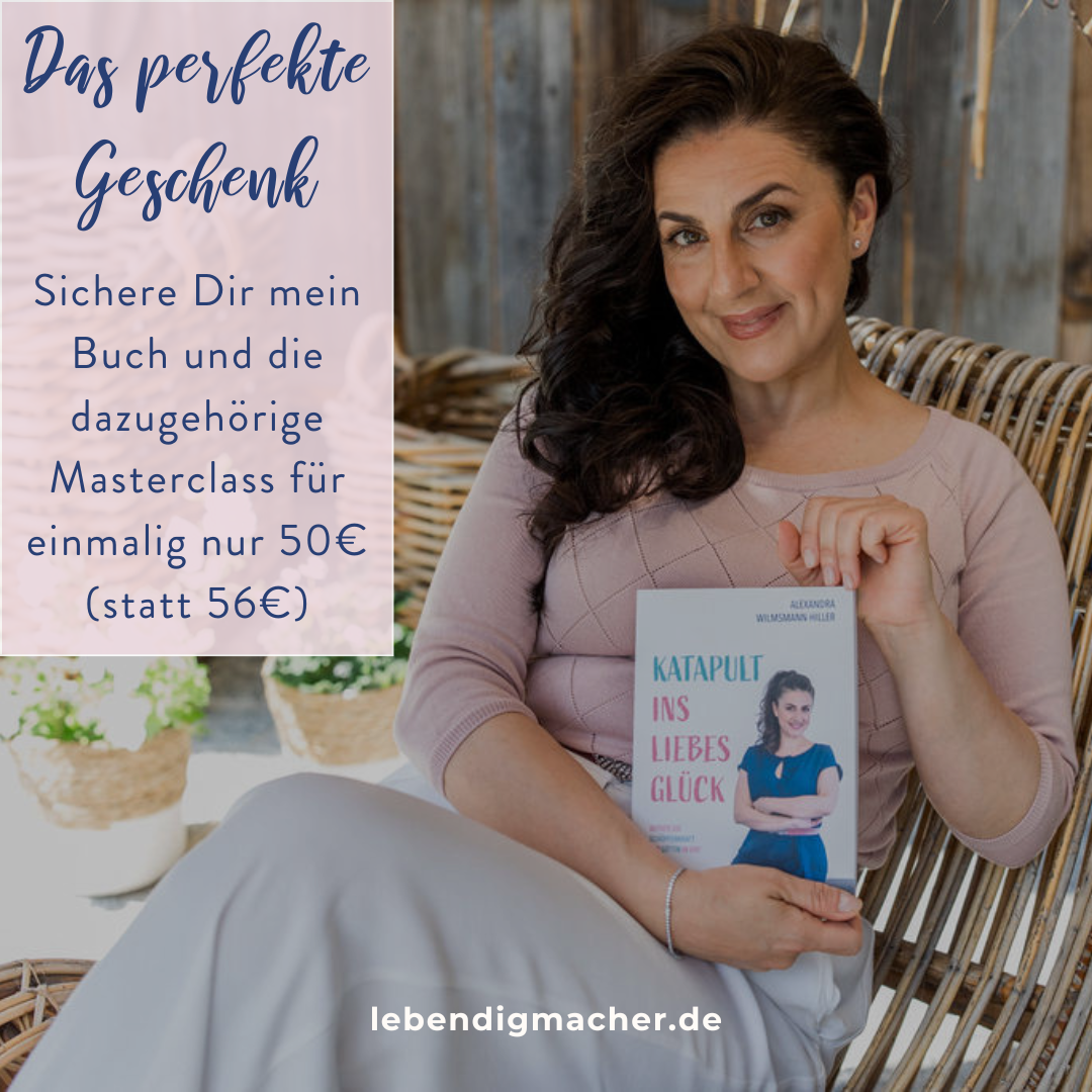 Suchst Du nach einem liebevollen und persönlichen Geschenk für Deinen Lieblingsmenschen oder auch für Dich? Mit meinem Buch "Katapult ins Liebesglück. Befreie die Schöpferkraft der Göttin in Dir" biete ich Dir nicht nur eine inspirierende Lektüre, sondern auch die Chance auf tiefe persönliche Transformation. Für nur 50€ statt 56€ erhältst Du das Buch, von mir persönlich signiert, zusammen mit der Masterclass, die Dir praktische Übungen und wertvolle Einblicke in die Themen Selbstliebe und Beziehungsentwicklung bietet. 💖