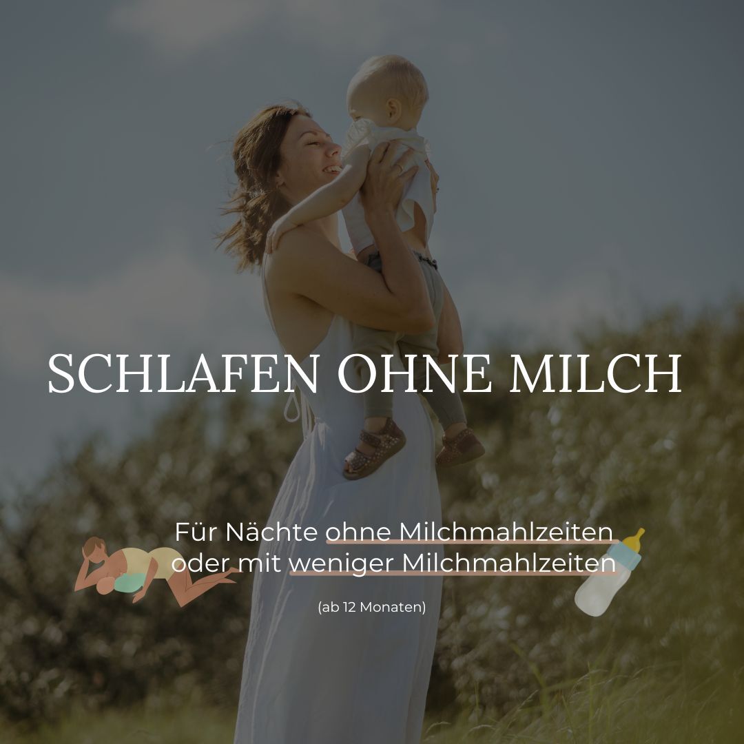 Mit SCHLAFEN OHNE MILCH, deinem bindungs- und bedürfnisorientierten Onlinekurs für Nächte ohne oder mit weniger Milchmahlzeiten, lernst du, wie du deinem Kind Schritt für Schritt zeigen kannst, auch ohne Milch ein- und weiterzuschlafen.