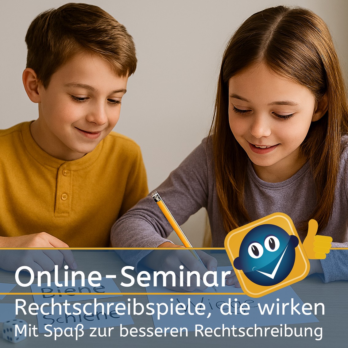 Viele Kinder kämpfen mit der Rechtschreibung – und das oft mit Frust statt Freude. Doch Schreibenlernen kann auch anders gehen: motivierend, spielerisch und nachhaltig. In diesem Online-Seminar zeige ich dir kreative Rechtschreibspiele, die nicht nur für Abwechslung sorgen, sondern das bereits Gelernte auf unterhaltsame Weise festigen und wiederholen helfen.