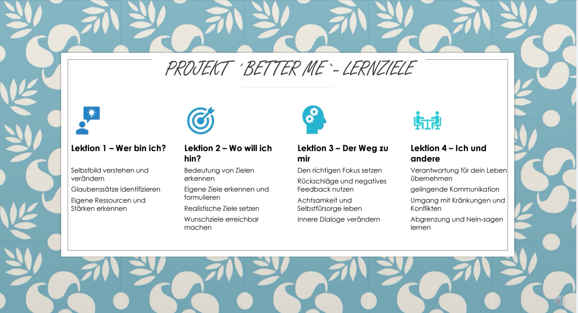 Im Online-Kurs Projekt ´Better-me` - Verbessere deine Beziehung zu dir selbst und anderen lernst du unter anderem