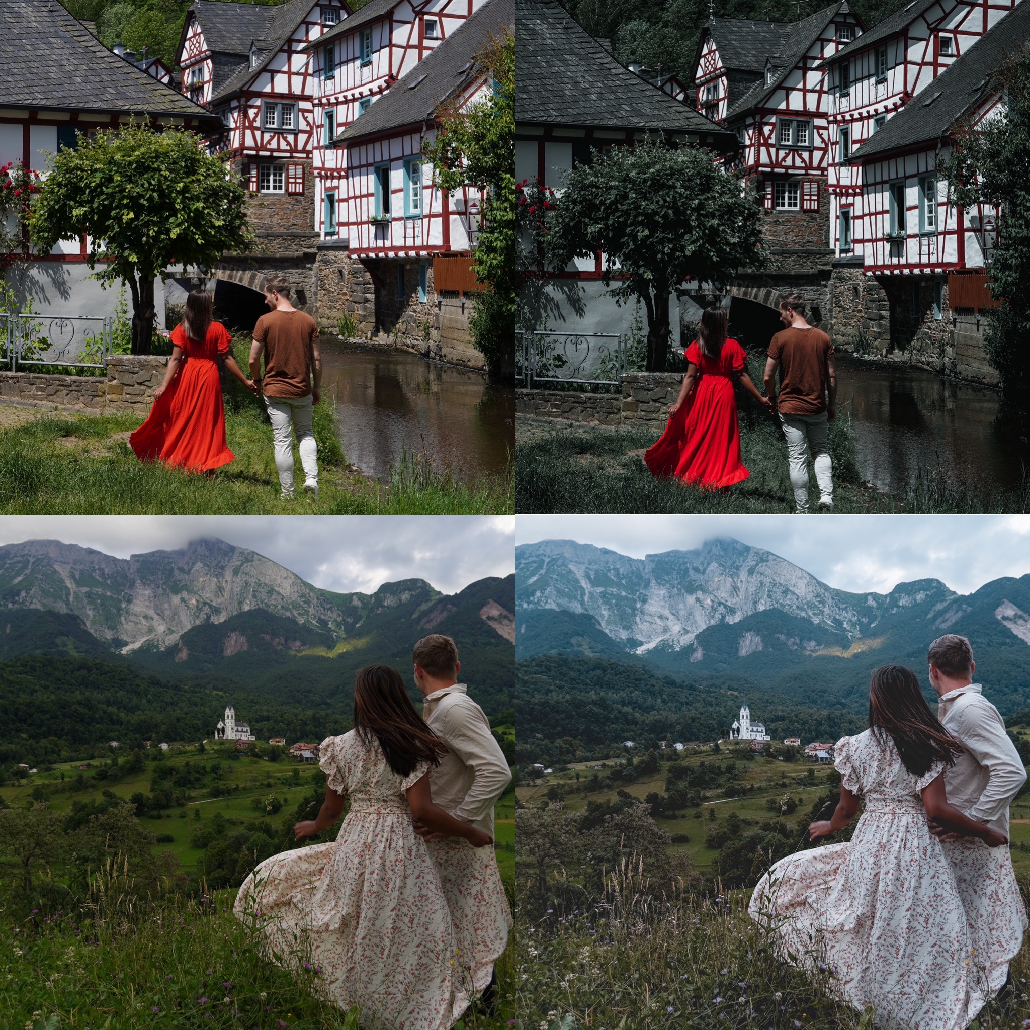 Die Presets sind sowohl für Handyfotos (JPG Dateien) als auch für Kamerafotos (RAW Dateien) geeignet. Du kannst Sie bei vielen verschieden Situationen verwenden (Outdoor, Indoor, Stadt, Natur). Bitte beachte aber, dass die Ergebnisse abhängig vom Foto variieren können und manchmal einige wenige Einstellungen verändert werden müssen, bis das Bild perfekt bearbeitet ist.