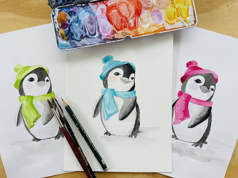 Im Malvideo male ich mit Ihnen einen niedlichen Pinguin. Lassen Sie uns eintauchen in die Welt der Aquarellfarbe und dabei eine niedlichen Pinguin malen. In Malvideo zeige ich Ihnen viele Tipps und Tricks.