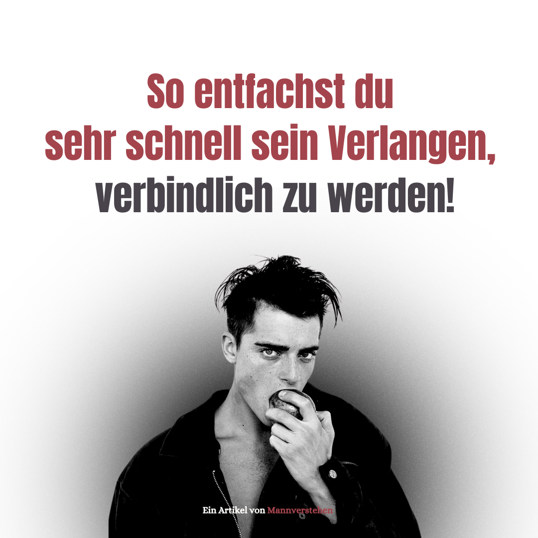 Männer fühlen dieses starke, innere Verlangen oft nicht oder nur für kurze Zeit. Ohne dieses Verlangen wird er nie von selbst den Schritt in eine verbindliche Beziehung machen. Doch was wäre, wenn du wüsstest, wie du in ihm genau dieses Verlangen entfachen kannst – so stark und intensiv, dass er es von selbst kaum erwarten kann, sich fest an dich zu binden?