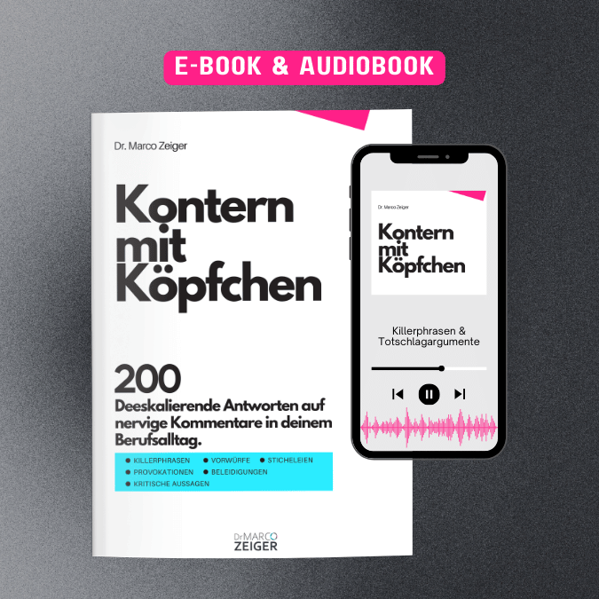 Mit diesem E-Book & Audiobook liefere ich dir 200 deeskalierende Antworten auf nervige Kommentare in schwierigen Situationen deines Berufsalltags. Keine langatmige Theorie, sondern eine Sammlung mit smarten Antworten! An ausgewählten Beispielen erkläre ich dir zudem, wie ich zu der Antwort komme und was ich damit bezwecken möchte.