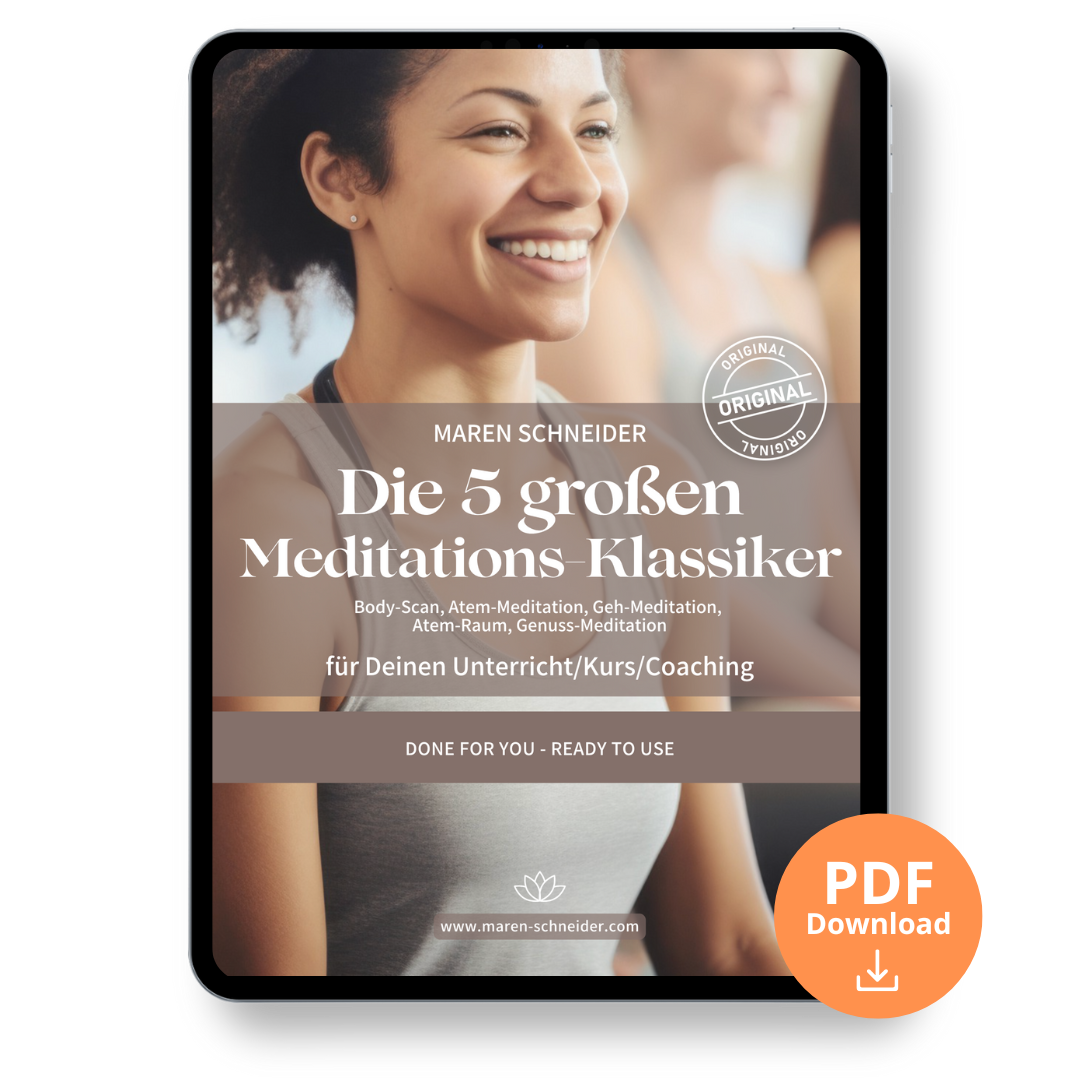Die 5 größten Meditationsklassiker - Body-Scan, Atem-Meditation, Geh-Meditation, Atem-Raum, Genuss-Meditation - für deinen Unterricht (PDF-Download)