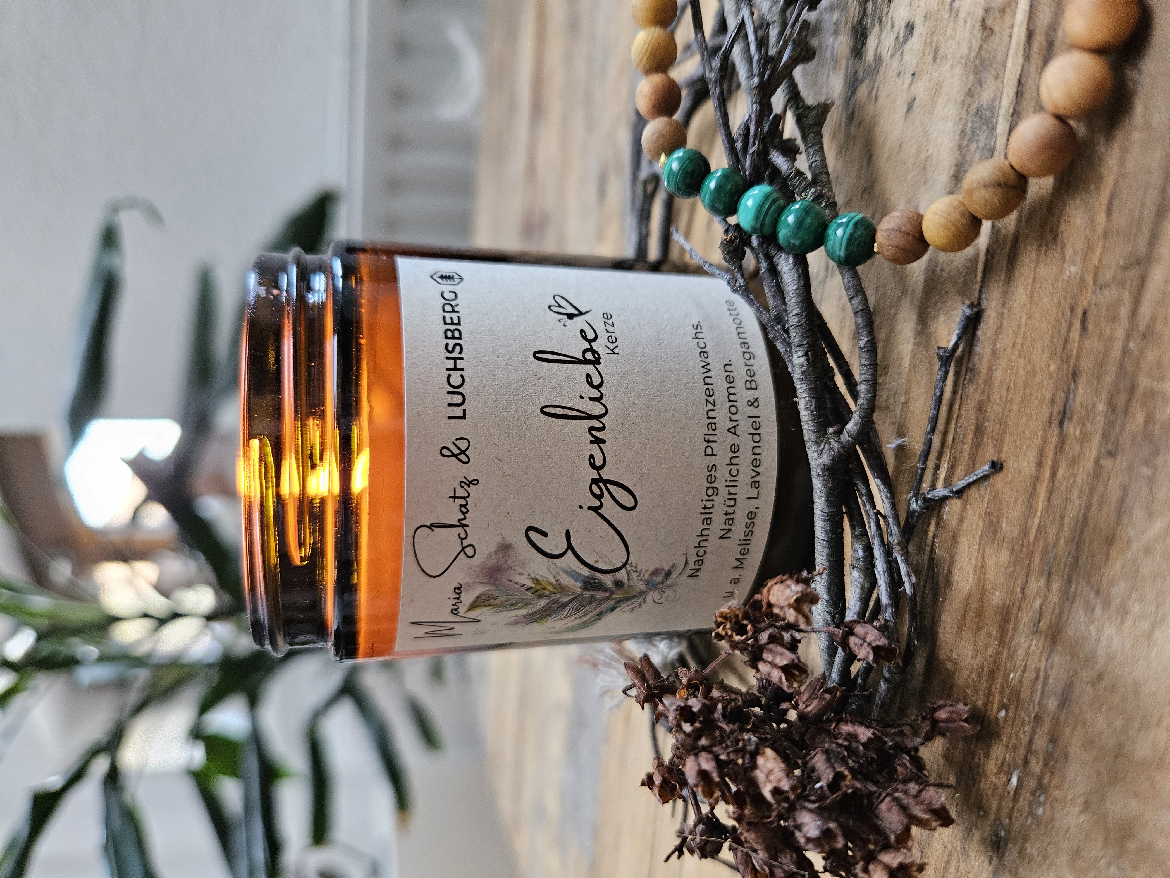 - einer handgemachten Selbstliebe Kerze aus reinen ätherischen Ölen, im Wert von 14,90€