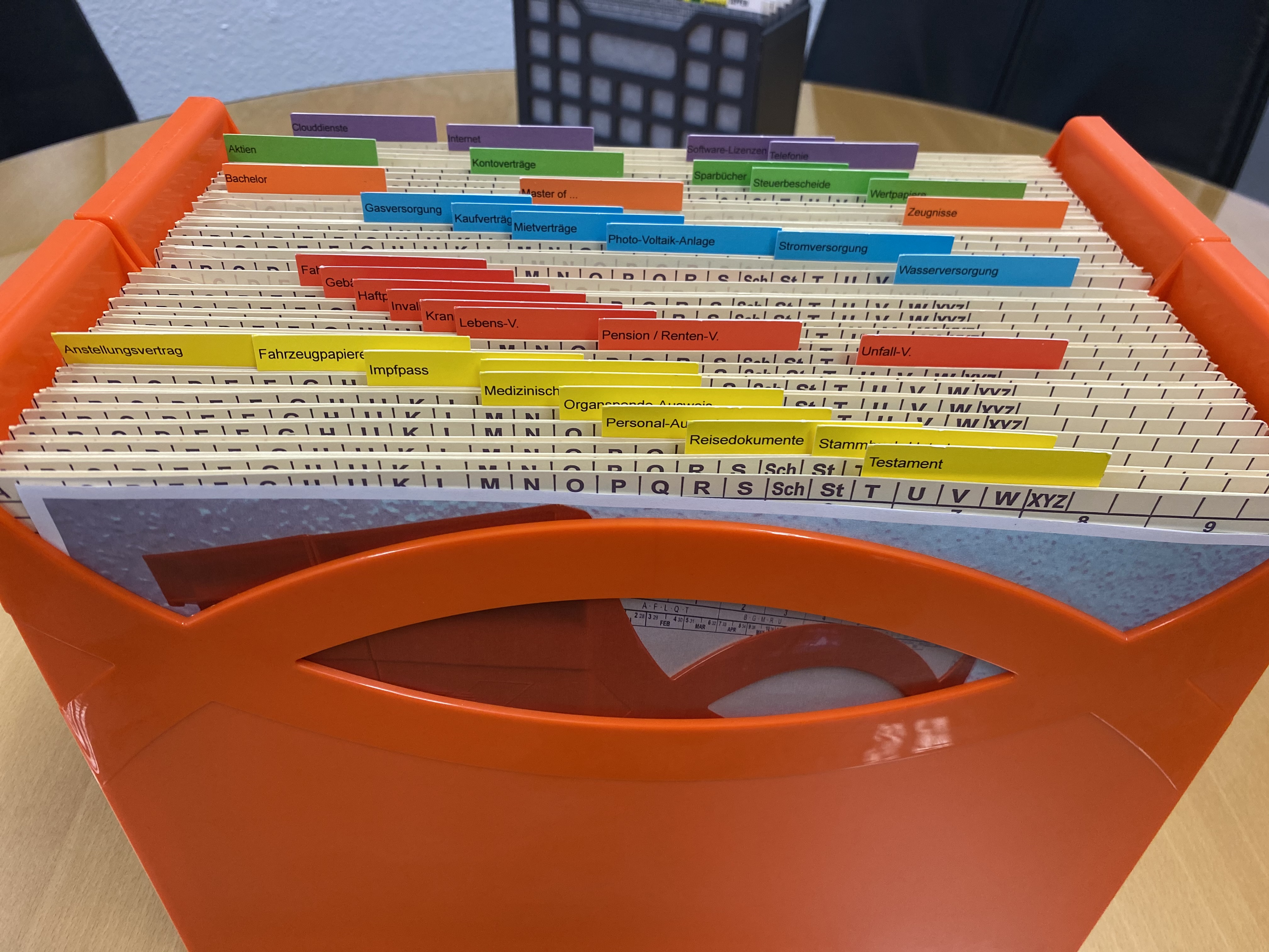 Farben als Organisationskriterium helfen dir, dich in deiner Papierablage besser zu organisieren. Unser Gehirn nimmt Farben viel schneller wahr als Schrift. Das bedeutet: Mit einer farblich gestalteten Dokumentenorganisation gehen sowohl die Ablage als auch der Zugriff wesentlich schneller. Ich zeige dir, wie das geht. Ich biete dir eine Stunde virtuelles Coaching, in der wir für Dich das passende Organisationmittel finden und gemeinsam einen optimierten Ablageplan entwickeln.