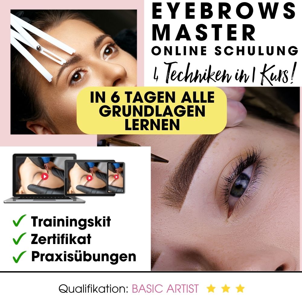 Die Eyebrows Masterclass ist eine Online Schulung für Anfänger wie Fortgeschrittene. Der Kurs umfasst alle Themen der Pigmentierung an den Augenbrauen in manueller Technik und mit der PMU Maschine. Es werden sowohl Microblading Härchenzeichnungen, als auch Powderbrows Schattierungen in unterschiedlichen Formen gelehrt. Sie dient als Vorbereitung auf unsere Präsenzkurse bzw. die Modellarbeit am echten Menschen.