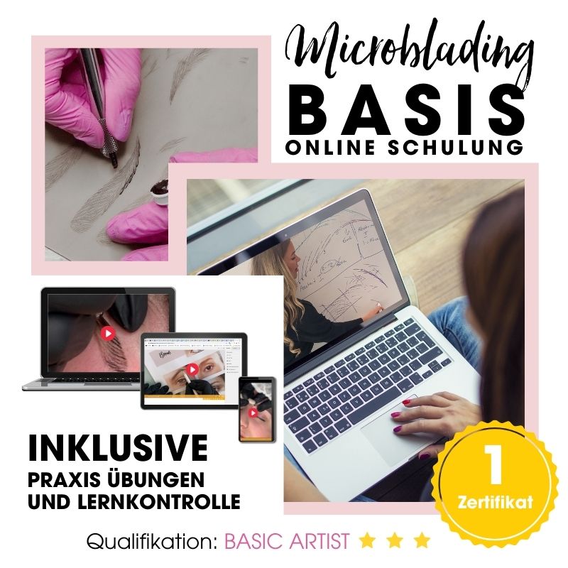Der Microblading Basic Artist Kurs ist eine Online Schulung für Anfänger wie Fortgeschrittene. Er dient als Vorbereitung auf unsere Präsenzkurse bzw. die Modellarbeit am echten Menschen.