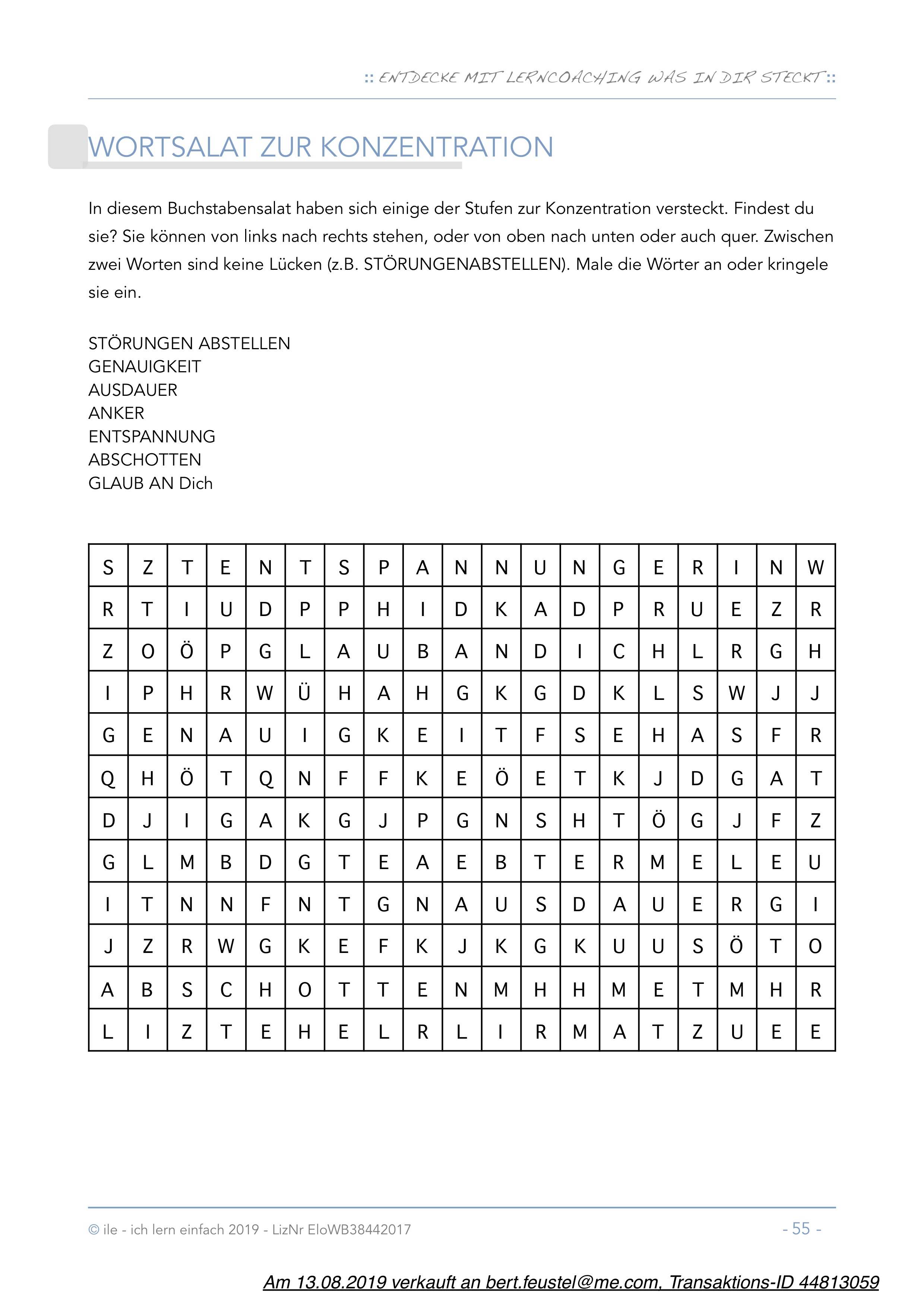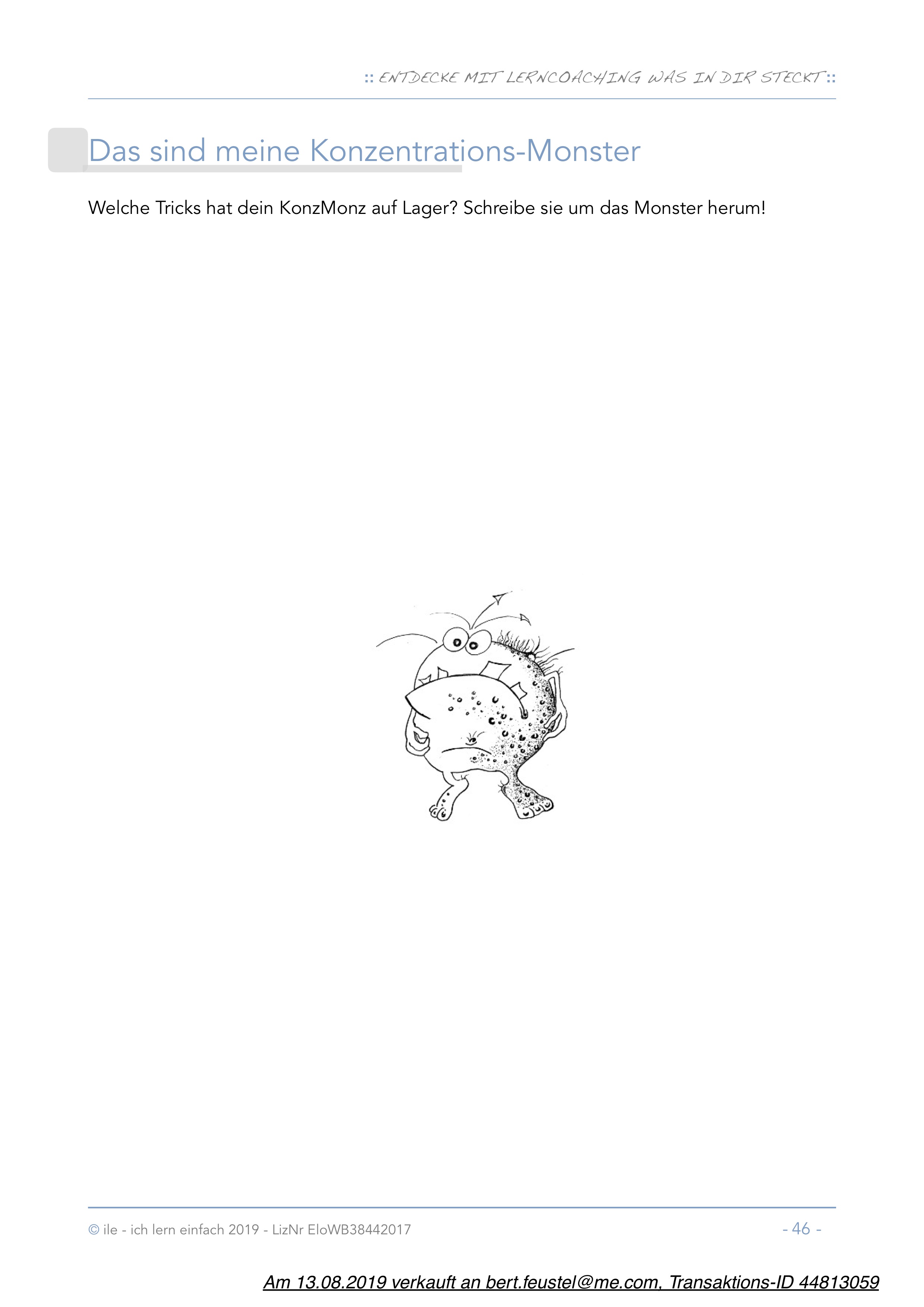 Dieses Workbook ist eine Zusammenstellung von Materialien, die ich gemacht habe, um im Lerncoaching selbst damit zu arbeiten. Zunächst entstanden sie von Sitzung zu Sitzung, im Laufe der Zeit entwickelte sich ein Bestand an Blättern, die sich bewährt haben und die ich immer wieder einsetze.