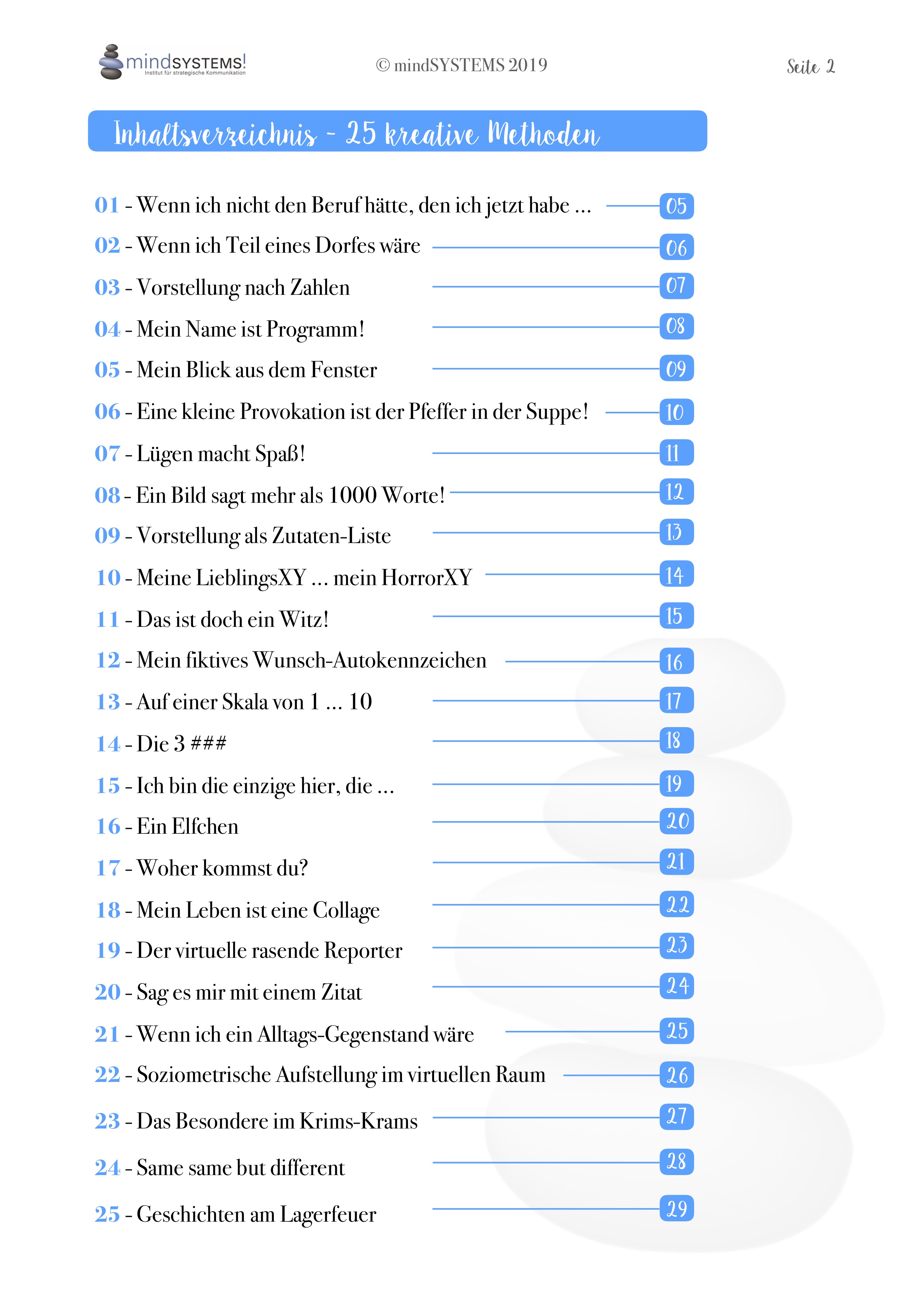 In diesem eBook findest du 25 bewährte, beliebte, kreative und klar dargestellte Vorstellungsrunden für dein Online-Seminar.
