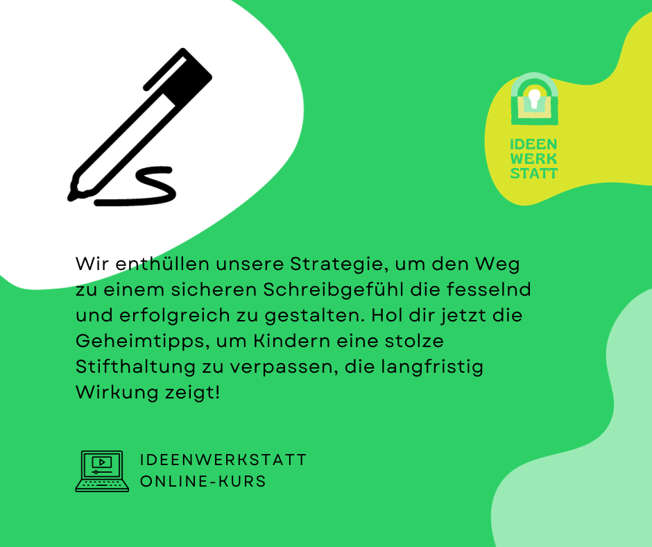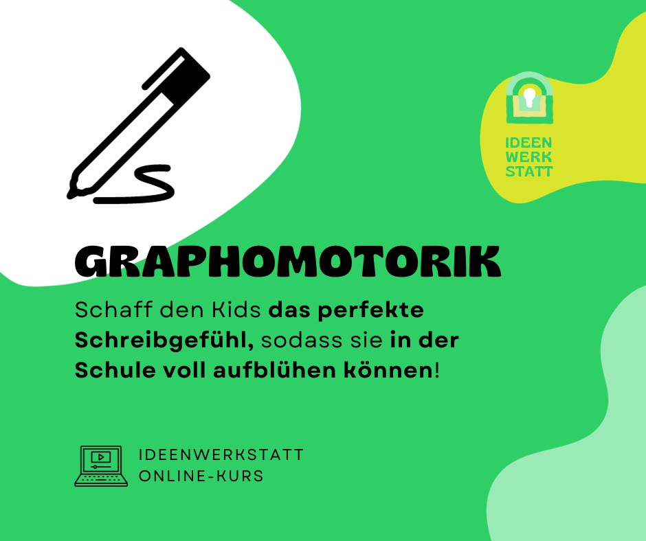 Die Ideenwerkstatt Graphomotorik ist ein Video-Kurs für Therapeut:innen, der dir zeigt, wie du das Wissen rund um die Graphomotorik mit praktischen & simplen Therapieideen verknüpfst, um so gleich am nächsten Tag mit frischen Ideen an der Graphomotorik der Kids zu arbeiten.