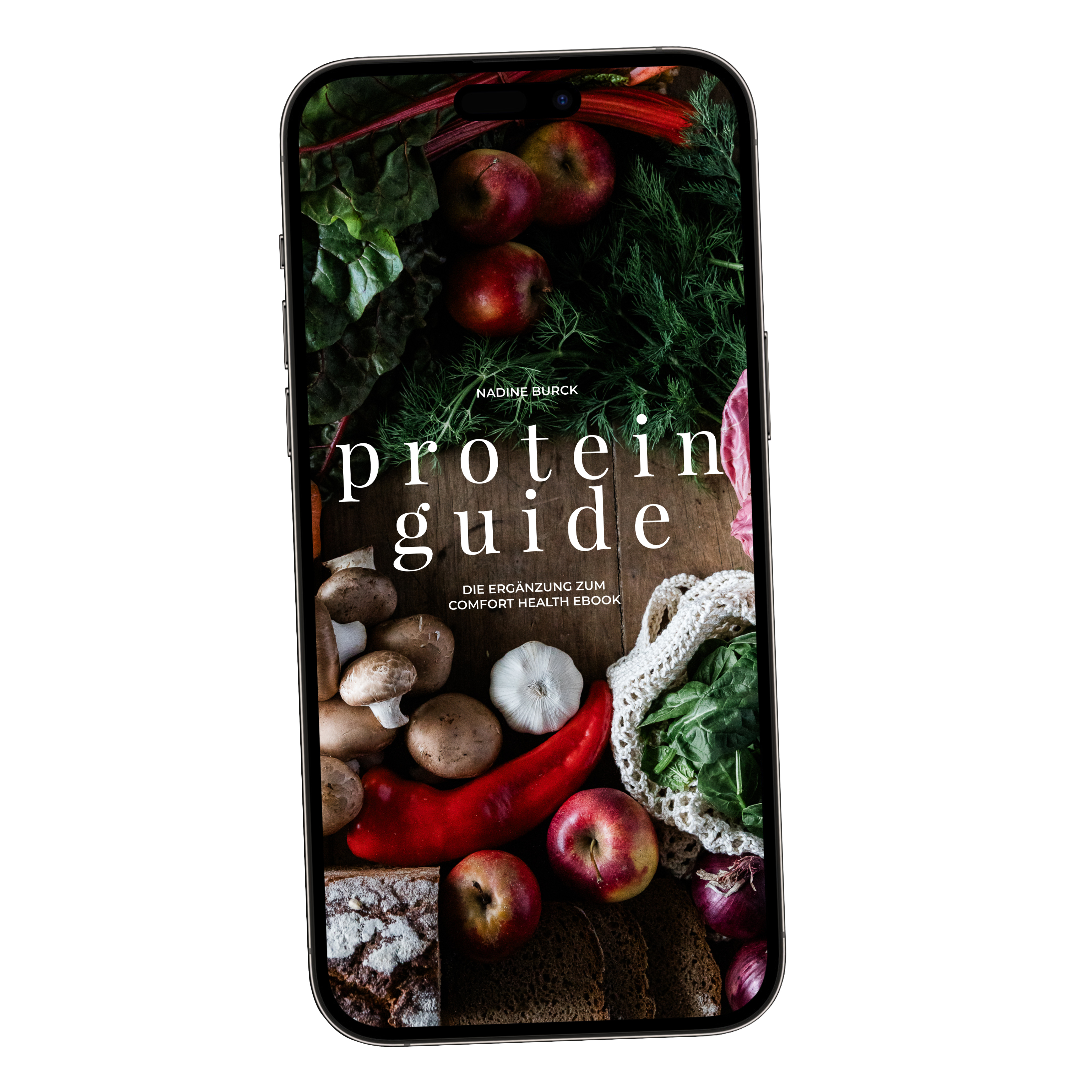 Wichtig: Dieser Guide ist eine Ergänzung meines eBooks comfort health – in diesem stehen alle Informationen über Proteine, die du wissen solltest, wie zum Beispiel: Warum Proteine so wichtig sind, auf welche du hauptsächlich setzen solltest, um dich gesund zu ernähren, wie hoch dein Bedarf ist und welche Proteine du am besten wie kombinierst, um deinen Körper optimal zu versorgen.