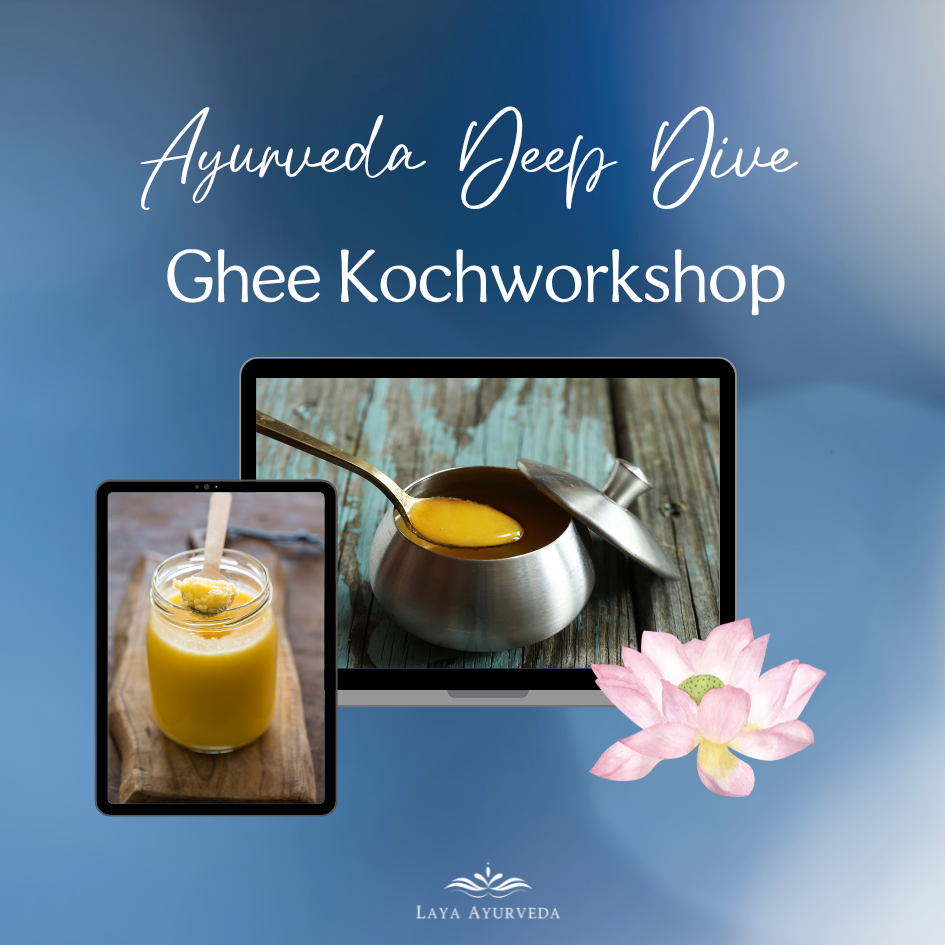 Lerne tiefes Ayurveda Wissen über Ghee - das flüssige Gold, das eins der stärksten Heilmittel der jahrhundertalten Tradition ist. In diesem Live Kochworkshop lernst du Ghee nicht nur zubereiten, sondern tief verstehen. Du kochst mit mir Schritt für Schritt, bekommst präzise Anleitungen und erfährst, worauf es bei Butter, Temperatur und Zeit wirklich ankommt. Dabei tauchen wir ein in jahrhundertealtes ayurvedisches Wissen, das Ghee als Heilmittel und Trägerstoff so wertvoll macht. Am Ende verlässt du den Workshop nicht nur mit einem Glas goldenen Ghee, sondern mit einem Schatz an Erfahrung, den du jedes Mal wieder nutzen kannst.