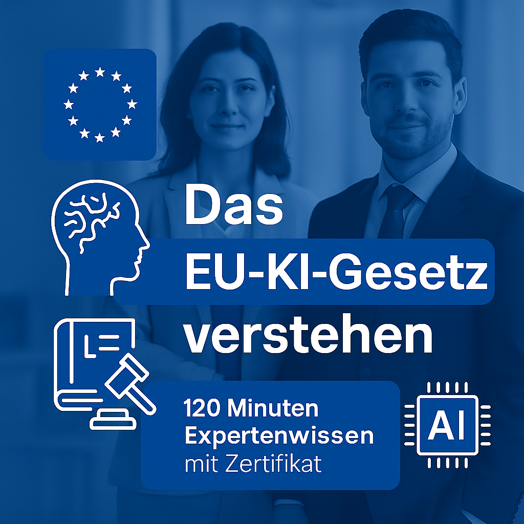 Seit dem 2. Februar 2025 ist das EU-KI-Gesetz verbindlich. Es verpflichtet Unternehmen zur rechtskonformen Nutzung von KI-Systemen – mit hohen Bußgeldern bei Verstößen. Dieser Kurs vermittelt Ihnen in nur 120 Minuten das erforderliche Wissen, um Ihr Unternehmen gesetzeskonform aufzustellen – inkl. Zertifikat und praxistauglicher Tools.
