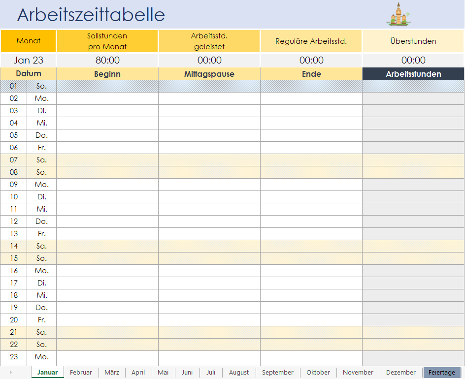 Behalten Sie Ihre Arbeitsstunden Monat für Monat im Blick.