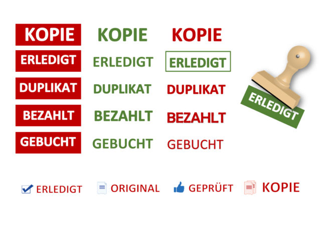 Stempel mit festen Wörtern als Abdruck sind Lagerstempel. Die kleinen „Helfer“ sind bestens für den Büroalltag geeignet und werden Sie bei Ihrer Arbeit tatkräftig unterstützen. Die digitalen Lagertextstempel Vorlagen helfen Ihnen, sich das lästige Wiederholen beim Beschriften der Dokumente zu ersparen.