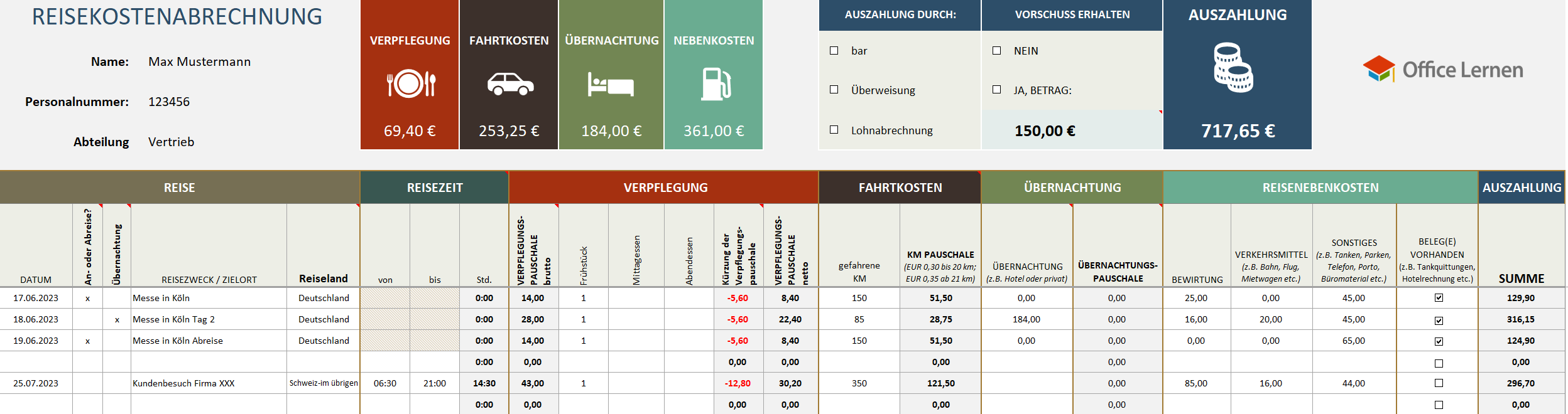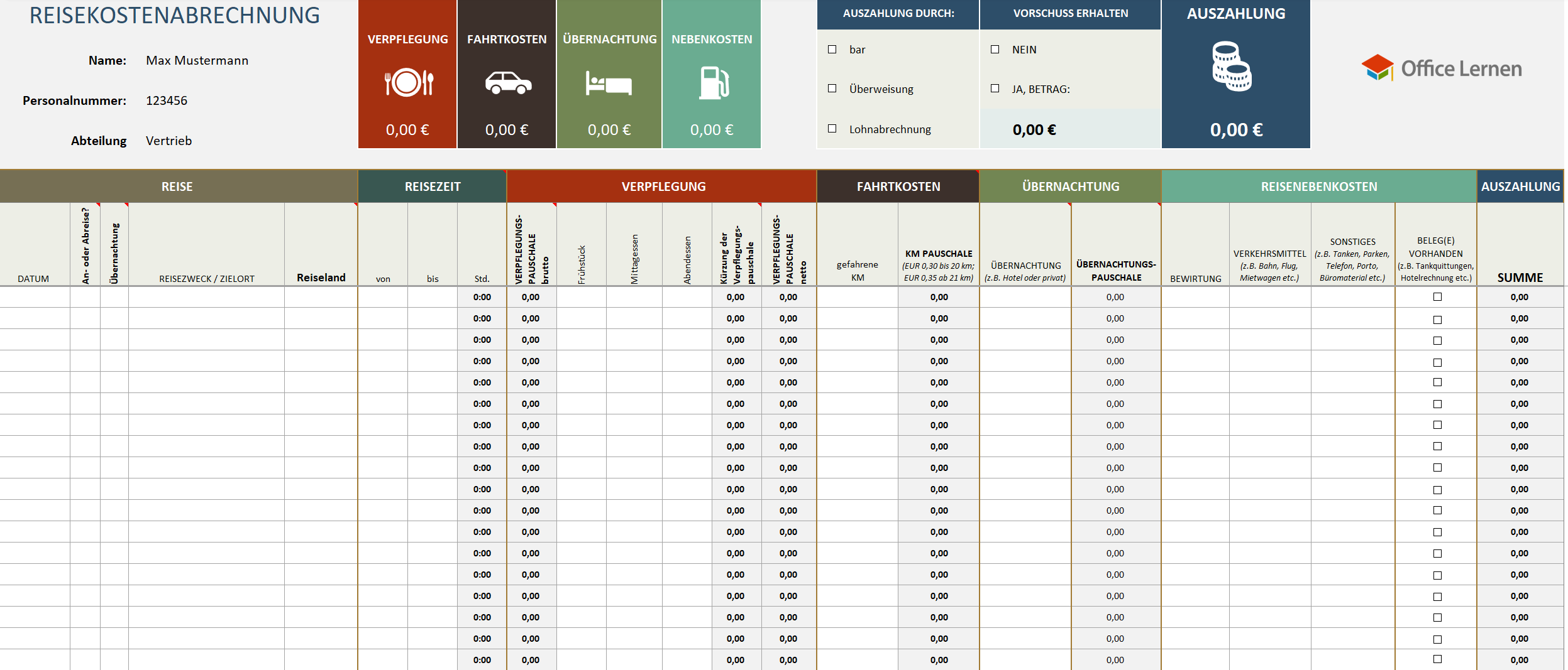 Excel Reisekostenabrechnung Vorlage für Inland und Ausland