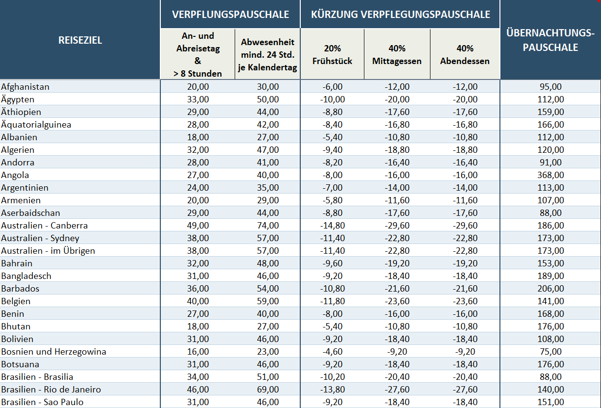 - Verpflegungspauschale: Kürzung der Verpflegungspauschale anhand der erhaltenden Mahlzeit wird berechnet