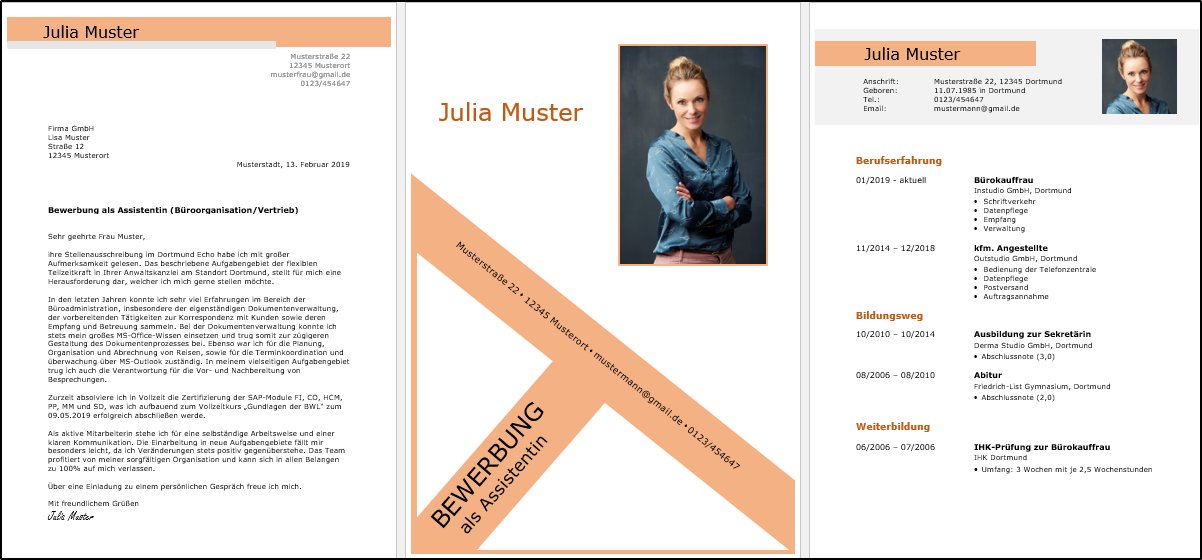 Unsere Bewerbungesvorlagen enthalten alles, was sie für die Bewerbung benötigen: Anschreiben, Deckblatt sowie Lebenslauf.