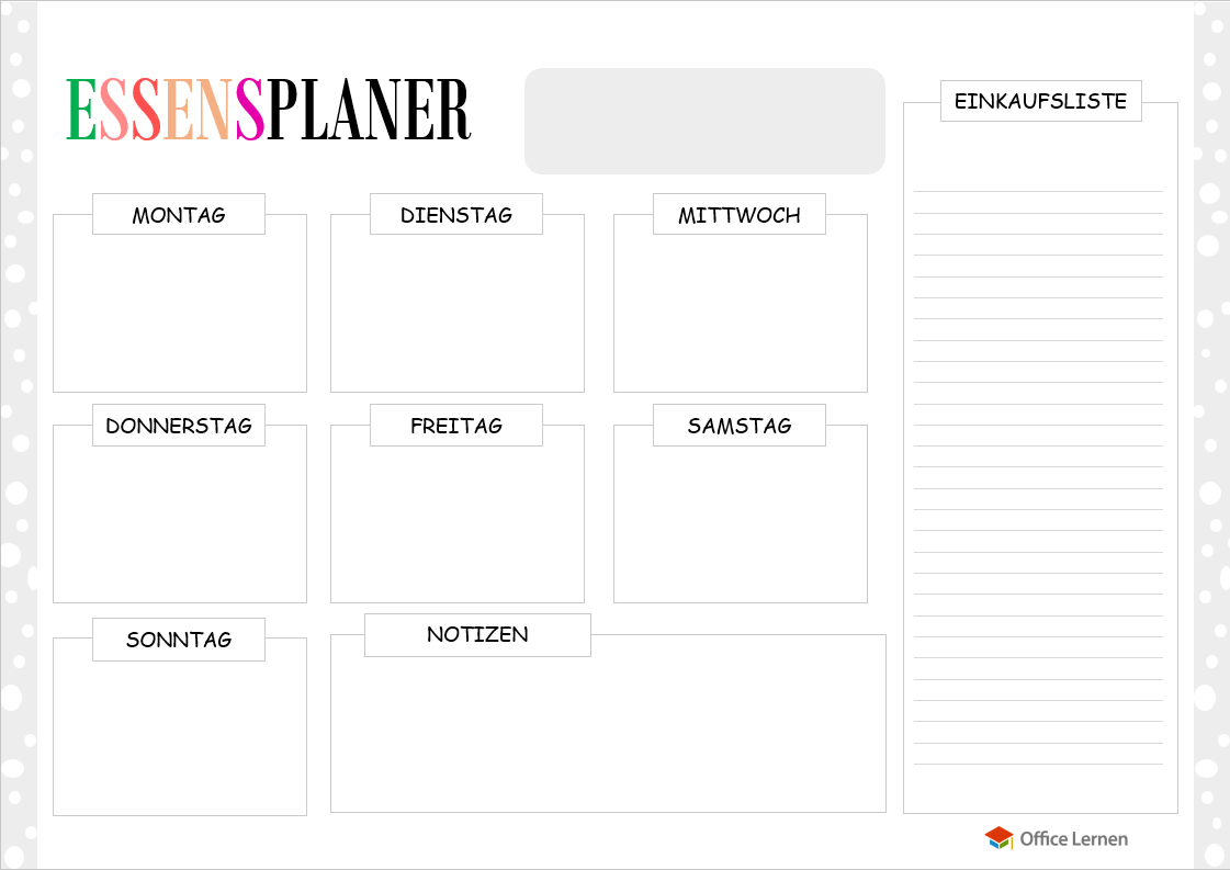 Der Menüplaner bietet genügend Platz für alle Ihre Gerichte, Termine, Einkaufsliste und Notizen. Für Küche, Kita, Schule.