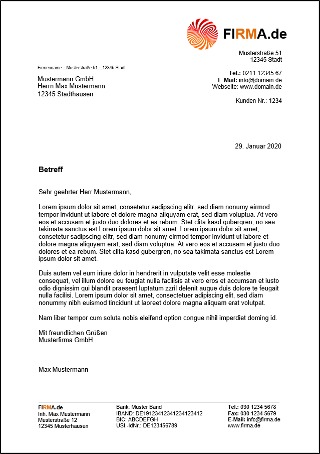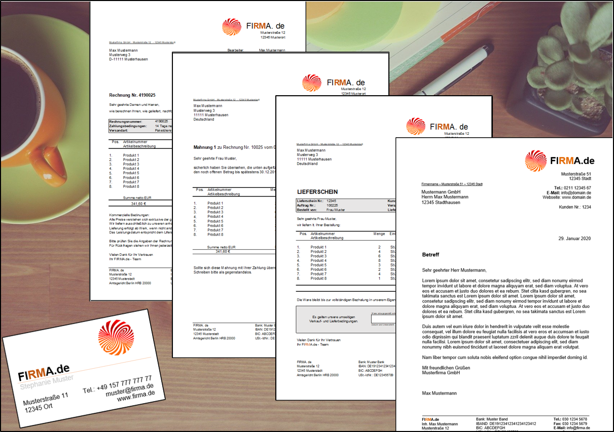 Unser attraktives Briefvorlagen-, Rechnungs-, Mahnungs-, Lieferschein-, oder Visitenkartendesign, hinterlässt bei Ihrem Kunden einen professionellen Eindruck.