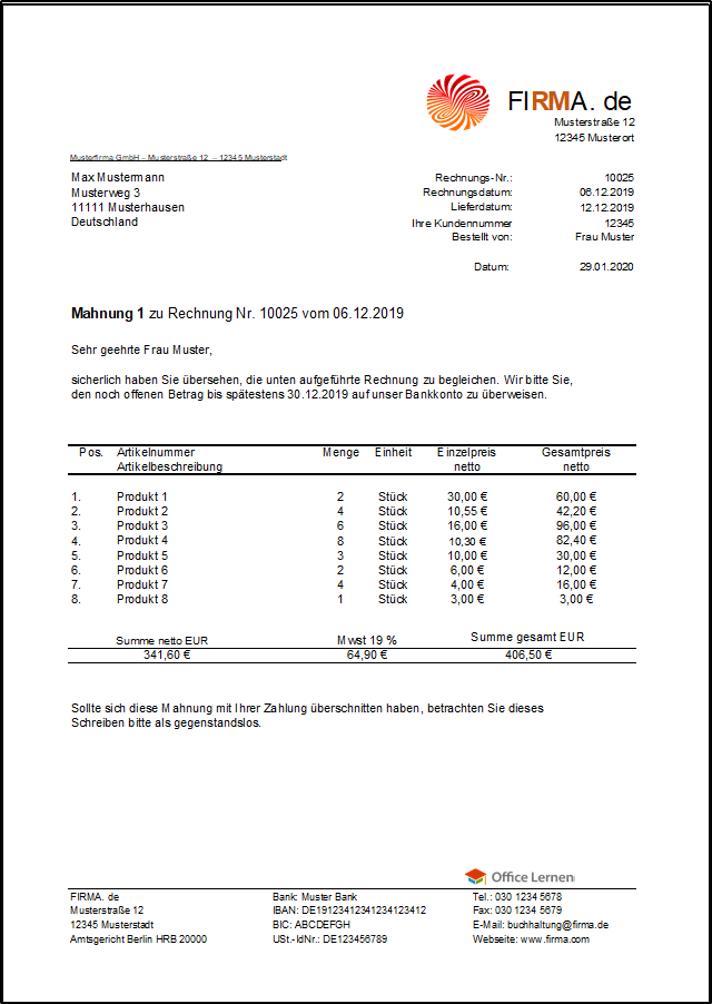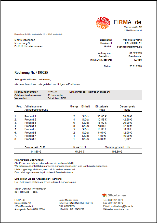 Mit Hilfe der Word oder Excel Vorlagen können Sie im Handumdrehen eine sichere Briefvorlage, Rechnung, Lieferschein, Mahnung sowie Visitenkarte erstellen, die allen rechtlichen Anforderungen entspricht.